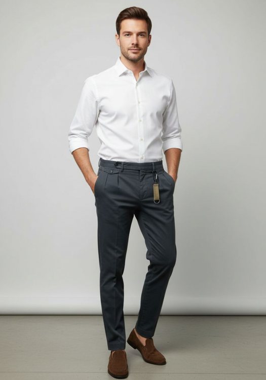 Aνδρικό Παντελόνι της εταιρείας BOSS. Ανήκει στην Chino συλλογή της εταιρείας και χαρακτηρίζεται από την αισθητική του. Είναι μονόχρωμο με διακριτικό μικροσχέδιο στην ύφανση, σε Tapered γραμμή, ενώ brandname βρίσκεται στο πίσω μέρος της τσέπης