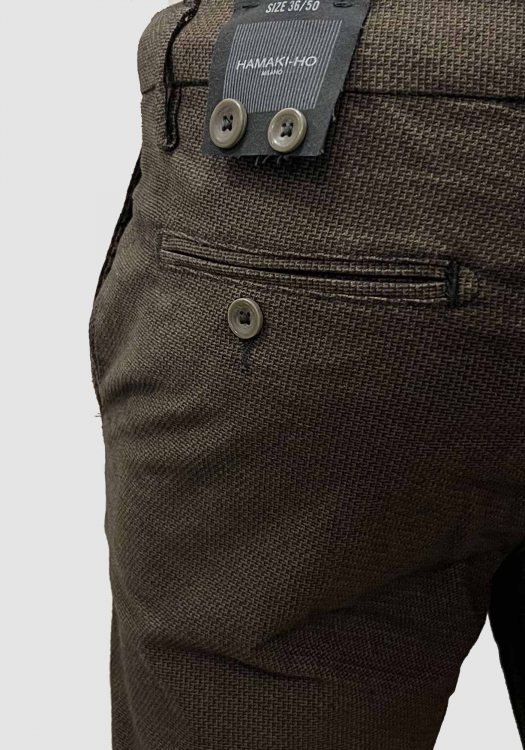 Ανδρικό παντελόνι της εταιρείας Gabba. Ανήκει στην Paul Class συλλογή της εταιρείας και αποτελείται από μαλακό ύφασμα υψηλής ποιότητας. Διακοσμείται με καρό μικροσχέδιο στην ύφανση που προκαλεί διακριτική διχρωμία και διαθέτει λοξές τσέπς στο πλάι. Τέλος το λογότυπο είναι κεντημένο στην πίσω τσεπη και είναι ιδανική επιλογη για business casual ή και casual look.