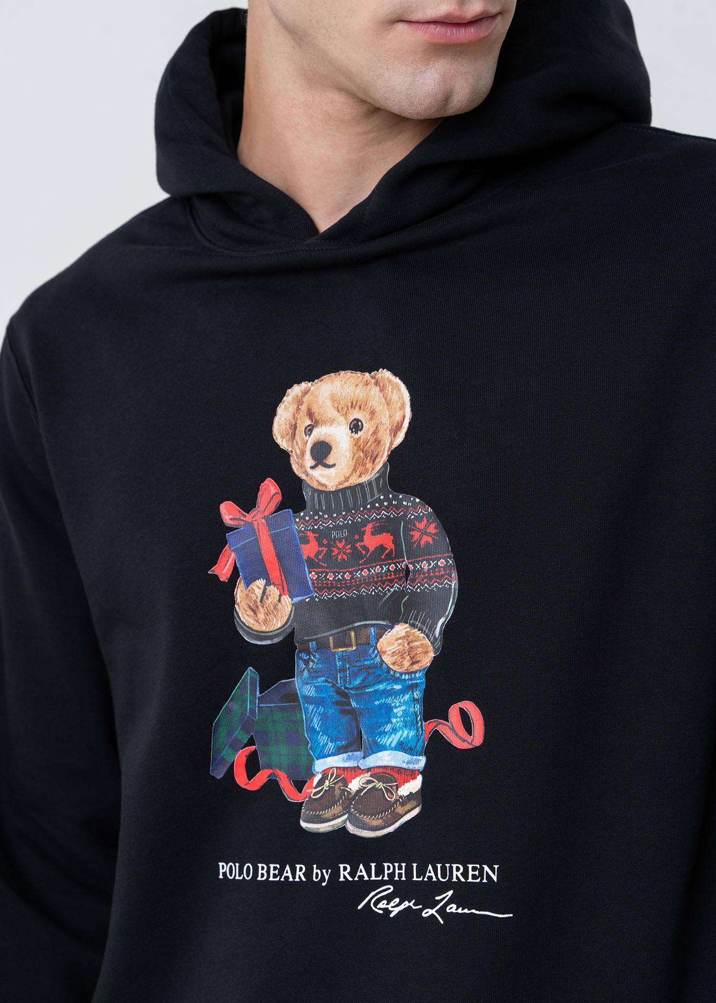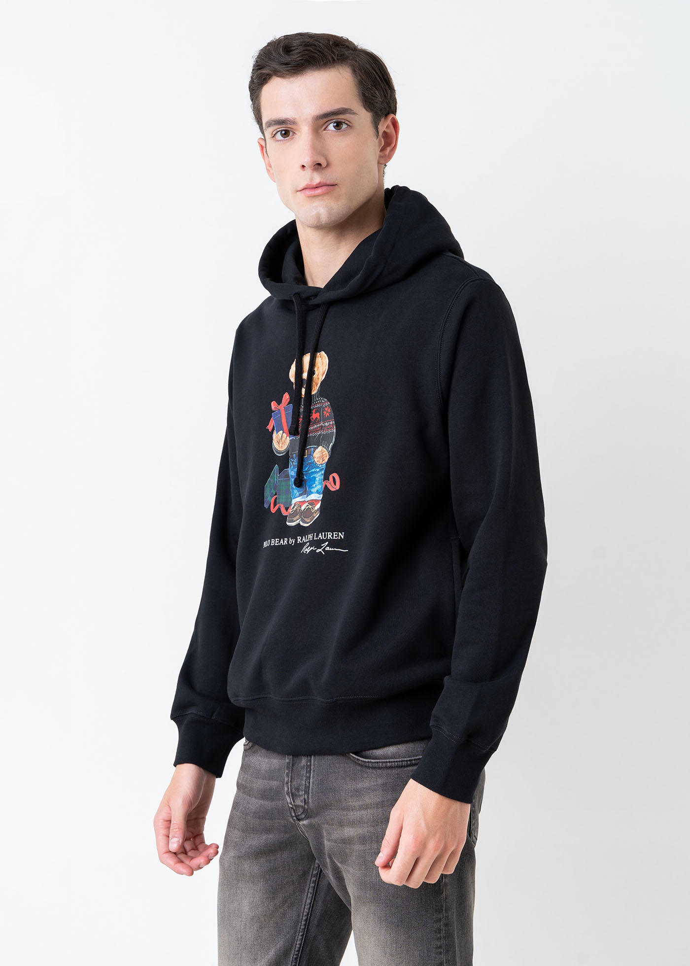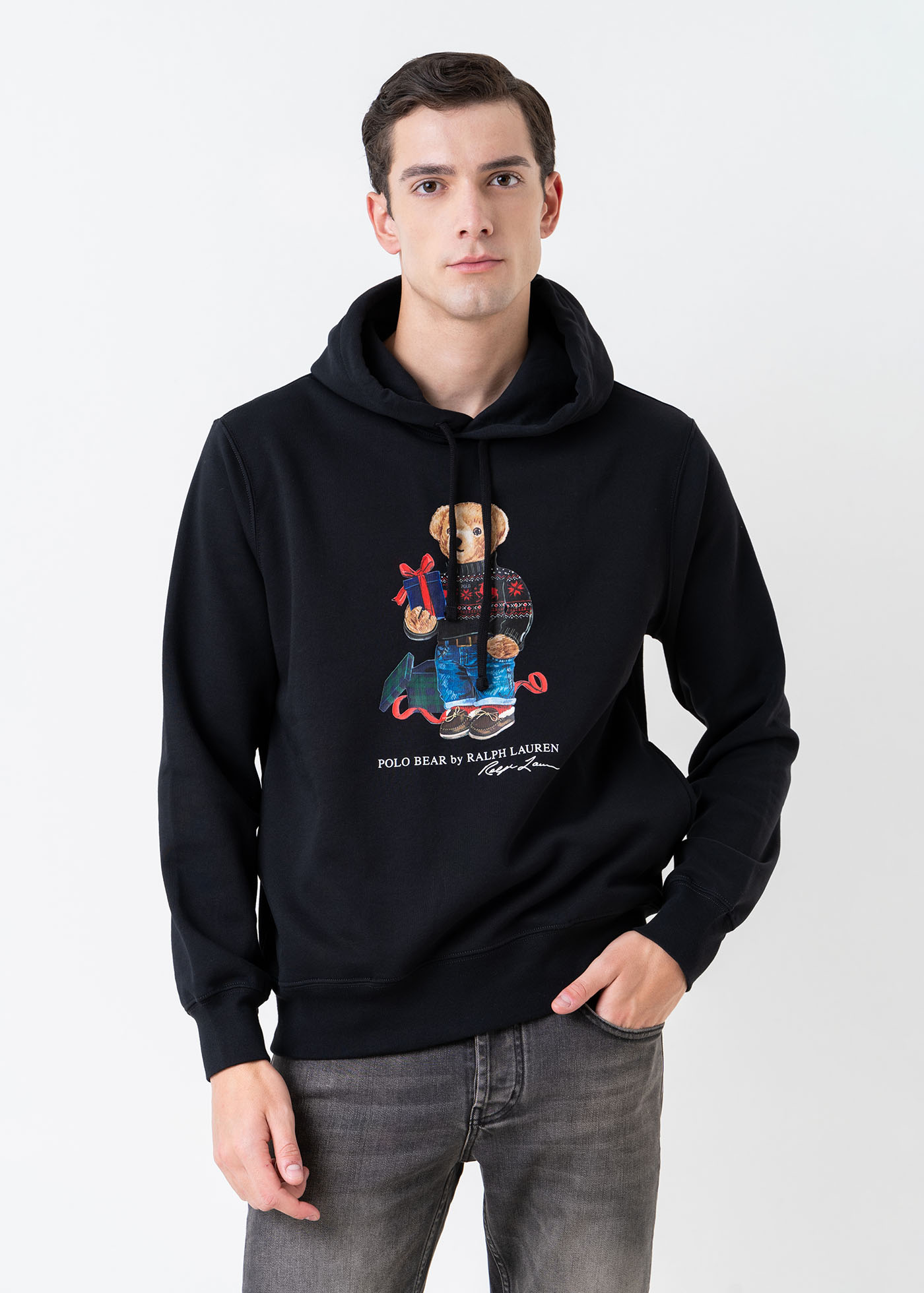 Aνδρική Φούτερ μπλούζα της εταιρείας Polo Ralph Lauren. Ανήκει στην Polo Bear συλλογή της εταιρείας και αποτελείται από ύφασμα υψηλής ποιότητας με εσωτερική fleece επένδυση για να κρατάει ζεστό το σώμα. Είναι μονόχρωμο και σε κανονική γραμμή, ενώ το bear λογότυπο διακοσμεί την μπλούζα στο ύψος του στήθους. Τέλος, διαθέτει κουκούλα και λάστιχο στα μανίκια και στην μέση για σταθερό κράτημα.