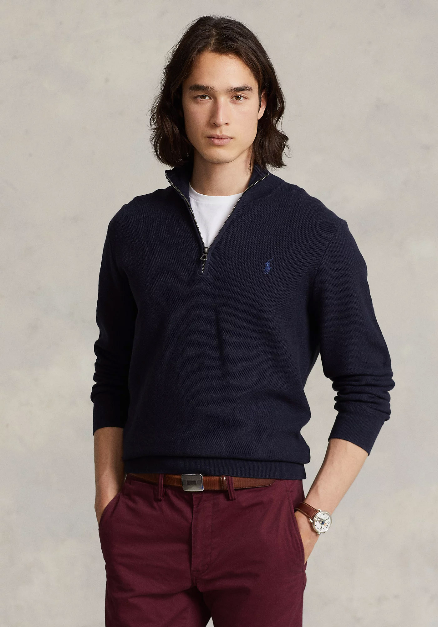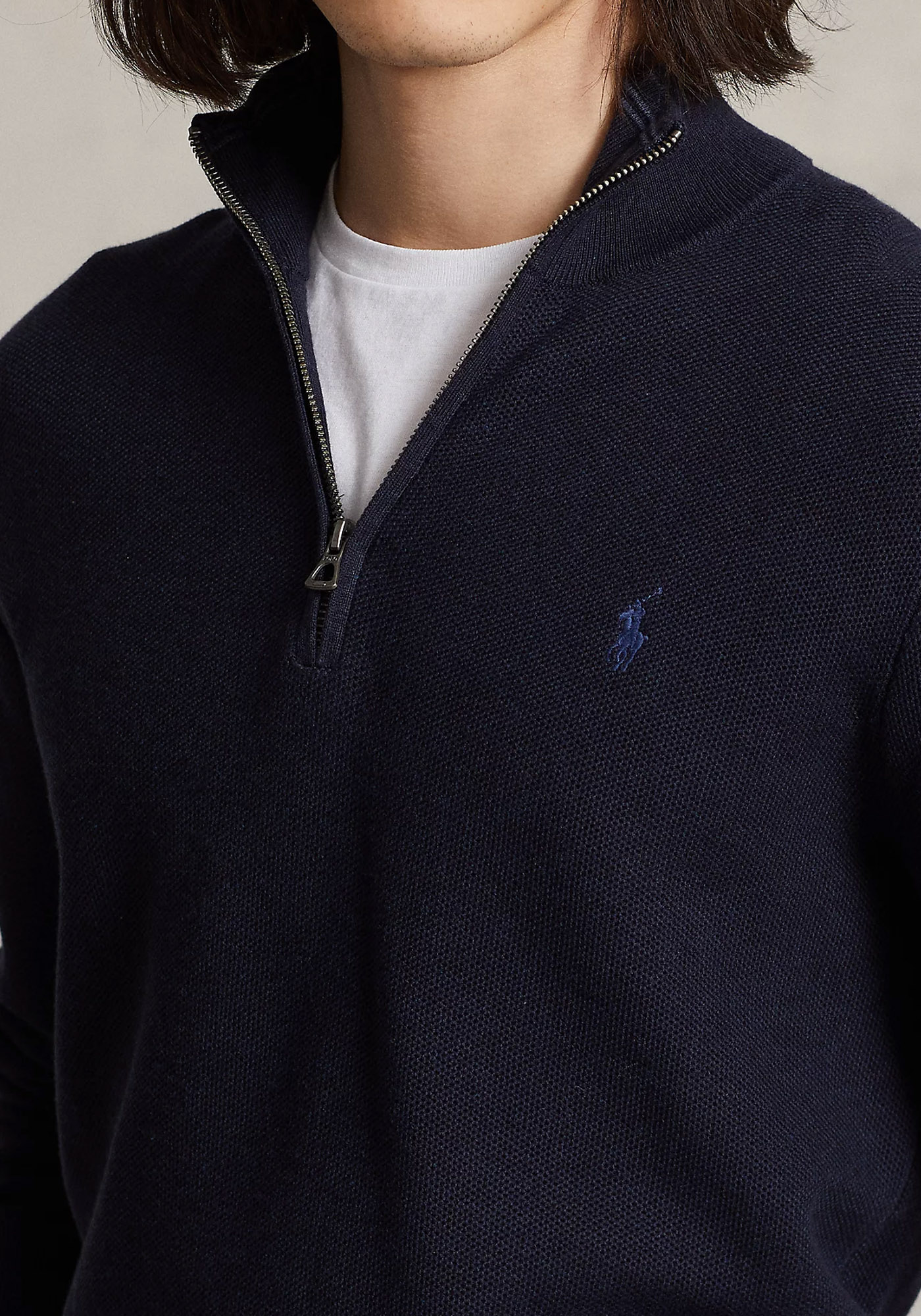 - Mesh-Knit Cotton Quarter-Zip Jumper