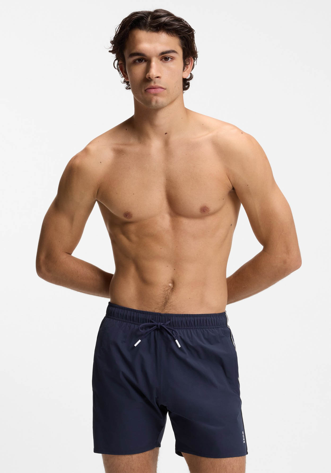 Ανδρικό μαγιό της εταιρείας BOSS. Ανήκει στην Iconic συλλογή και διαθέτει αδιάβροχη επίστρωση. Είναι μονόχρωμο με το λογότυπο να το διακοσμεί χαμηλά στον μηρό, καθώς αναγράφεται ολογράφως. Διαθέτει λάστιχο στην μέση και κορδόνι για πιο σταθερό κράτημα.