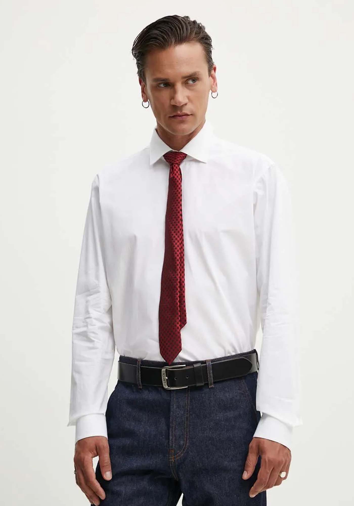 Ανδρικό πουκάμισο της εταιρείας HUGO. Ανήκει στην Valerio συλλογή της εταιρείας, και έχει σαν χαρακτηριστικό τoν minimal σχεδιασμό, σε συνδυασμά με την άψογη εφαρμογή του στο κορμί. Είναι μονόχρωμο και μπορεί να φορεθεί με κοστούμι για ολοκληρωμένο αποτέλεσμα.