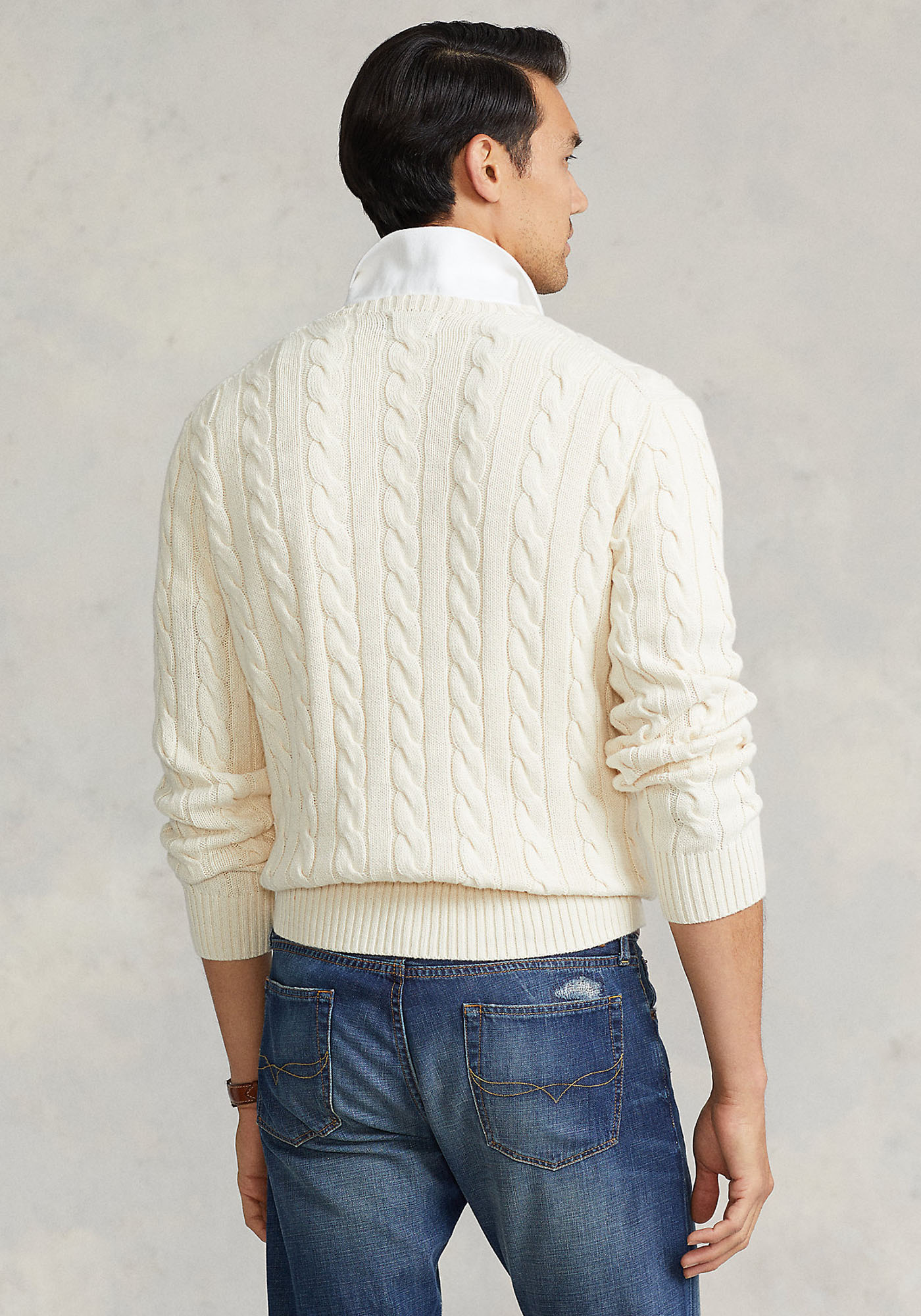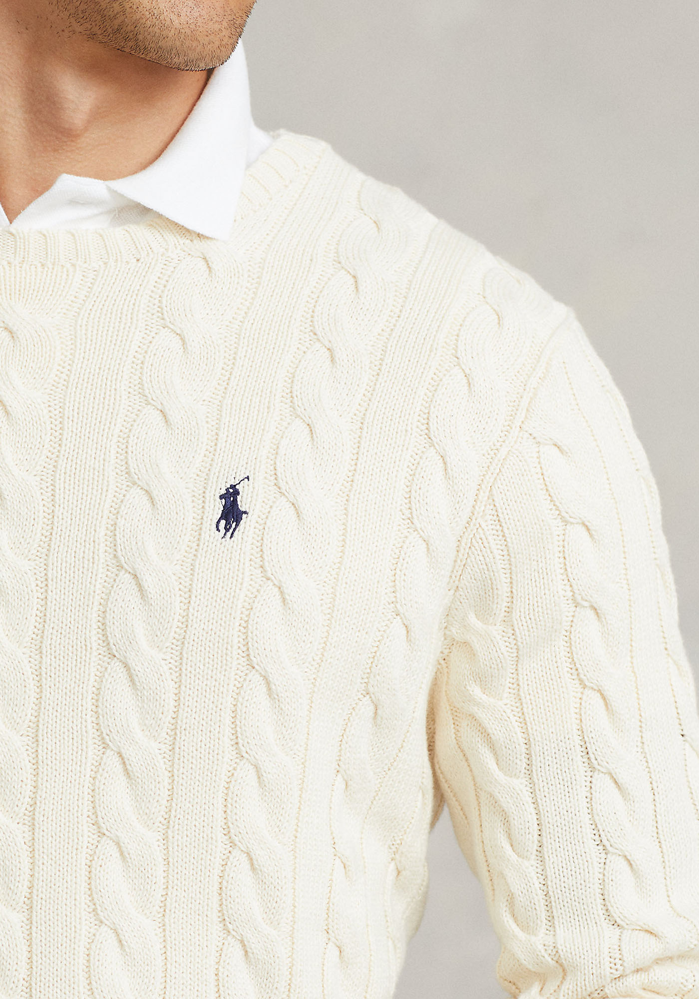 Aνδρικό Cable Jumper της εταιρείας Polo Ralph Lauren. Ανήκει στην Jumper συλλογή της εταιρείας και αποτελείται από ύφασμα υψηλής ποιότητας. Είναι μονόχρωμο και σε κανονική γραμμή, ενώ το λογότυπο διακοσμεί την μπλούζα στο ύψος του στήθους. Τέλος, διαθέτει χοντρή ανάγλυφη πλέξη, στρογγυλή λαιμόκοψη και λάστιχο στα μανίκια και στην μέση για σταθερό κράτημα.