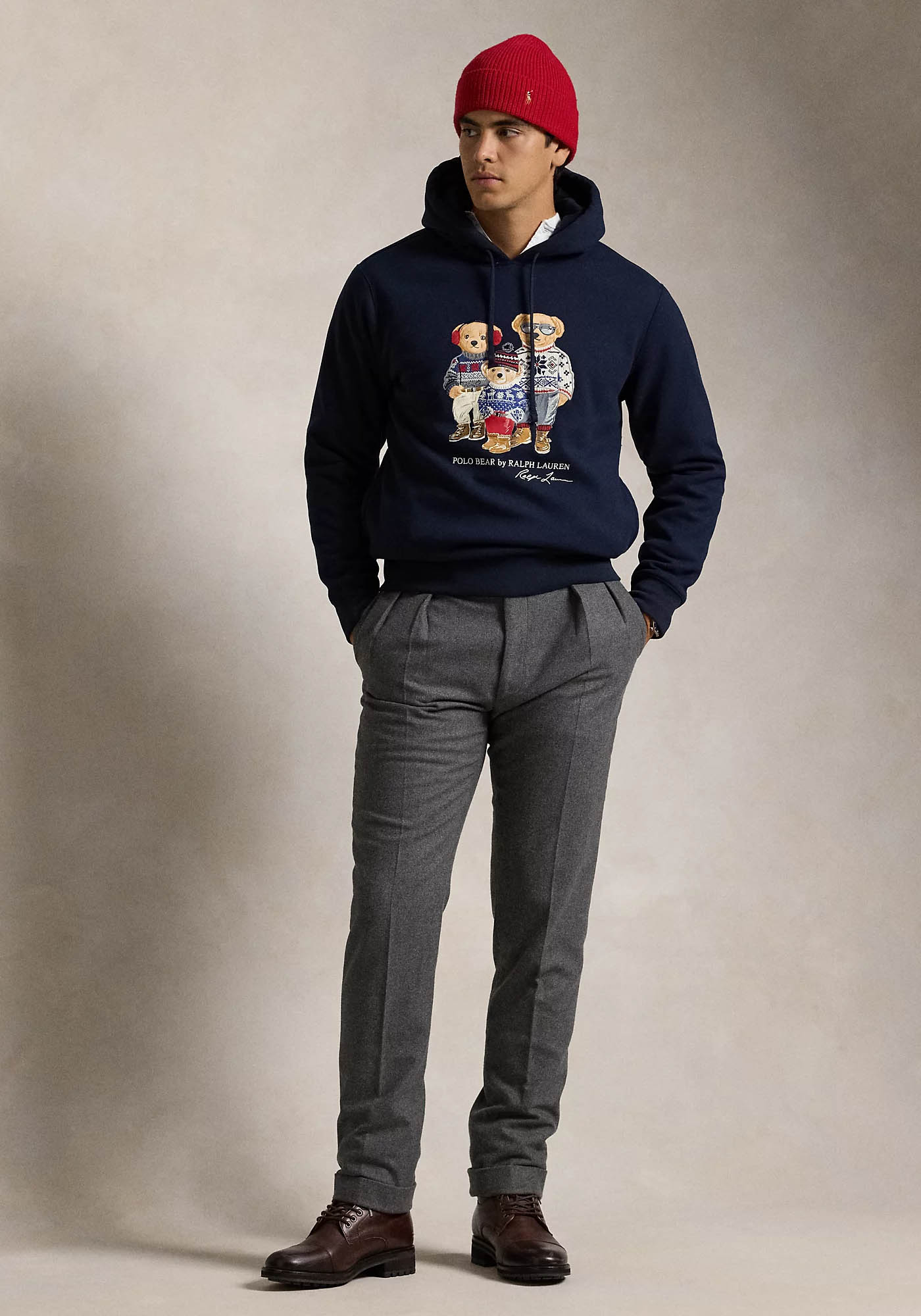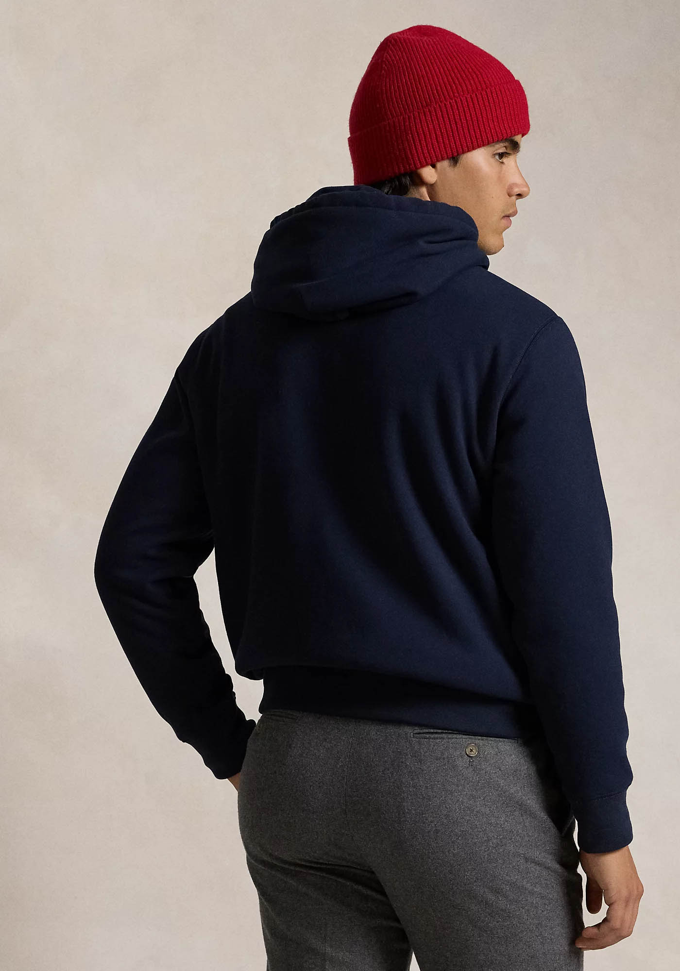 Aνδρική Φούτερ μπλούζα της εταιρείας Polo Ralph Lauren. Ανήκει στην Polo Bear συλλογή της εταιρείας και αποτελείται από ύφασμα υψηλής ποιότητας με εσωτερική fleece επένδυση για να κρατάει ζεστό το σώμα. Είναι μονόχρωμο και σε κανονική γραμμή, ενώ το bear λογότυπο διακοσμεί την μπλούζα στο ύψος του στήθους. Τέλος, διαθέτει κουκούλα και λάστιχο στα μανίκια και στην μέση για σταθερό κράτημα.