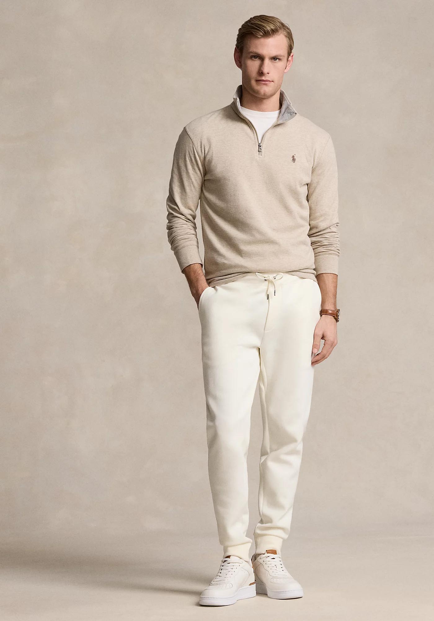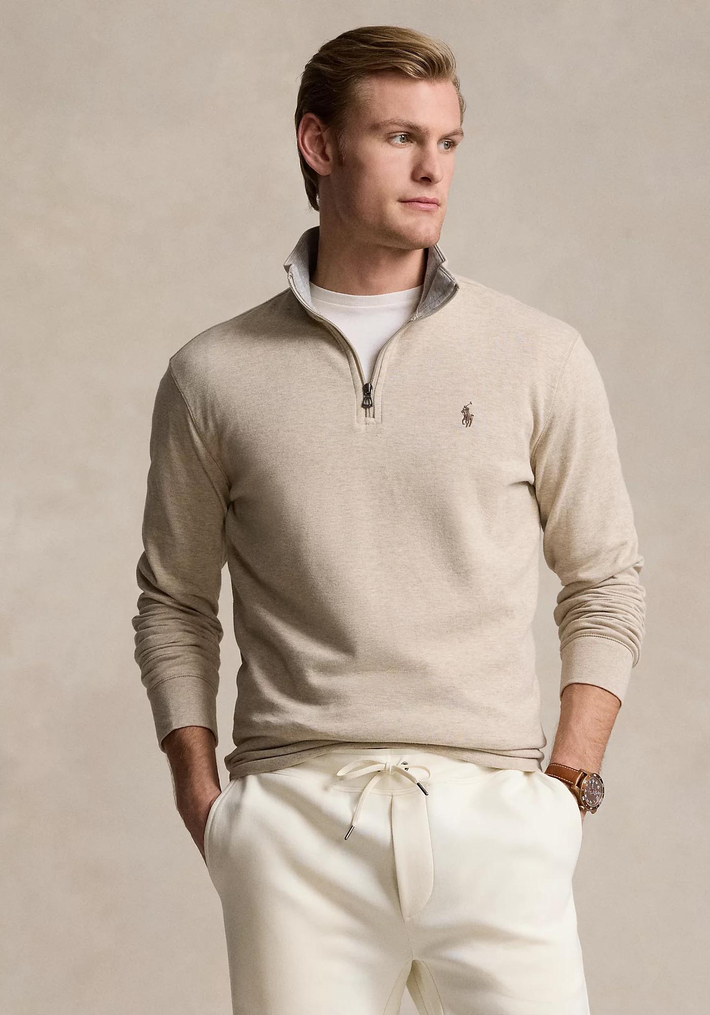 Aνδρικό Half Zip Pulloverr της εταιρείας Polo Ralph Lauren. Ανήκει στην Quarter-Zip συλλογή της εταιρείας και χαρακτηρίζεται από τον zip γιακά. Είναι μονόχρωμο και σε κανονική γραμμή, ενώ το λογότυπο βρίσκεται κεντημένο στο ύψος του στήθους. Τέλος, διαθέτει δίχρωμο γιακά στο εσωτερικό του και λάστιχο στα μανίκια και στην μέση για σταθερό κράτημα.