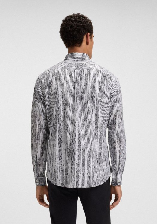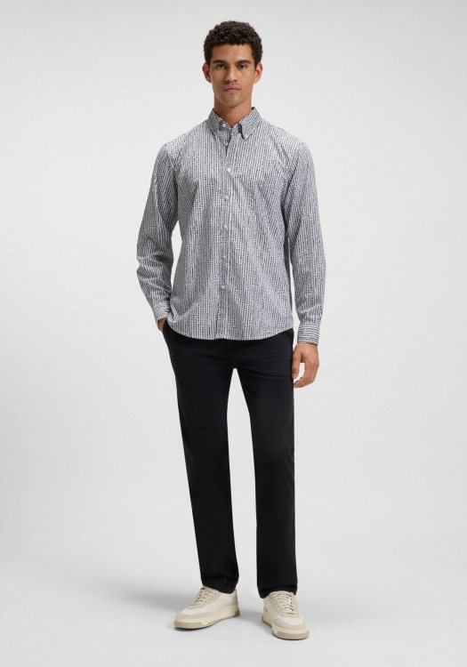 Το παντελόνι είναι σε στενή γραμμή. Διαθέτει κούμπωμα με φερμουάρ, δύο πλαϊνές και δύο πίσω τσέπες.