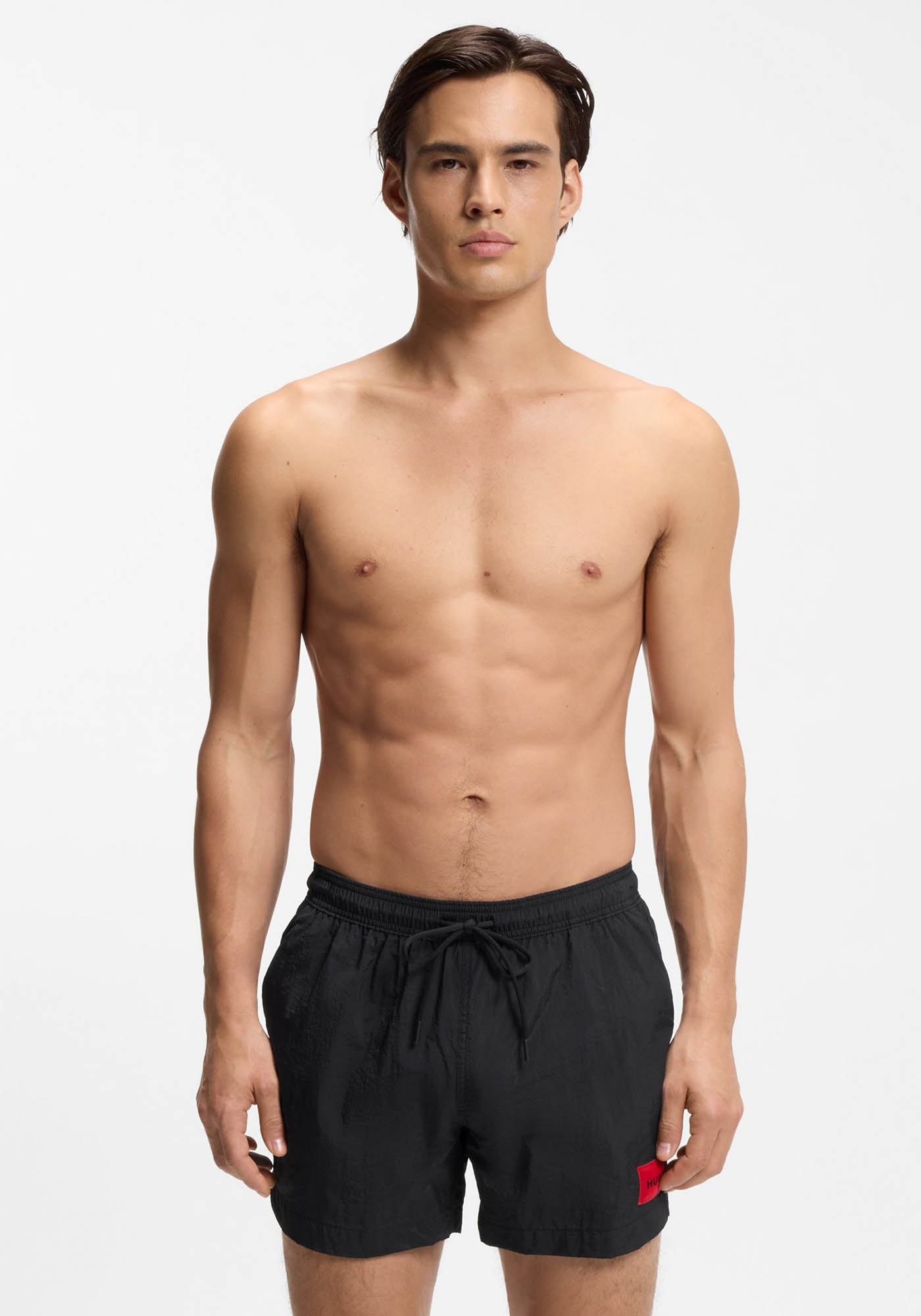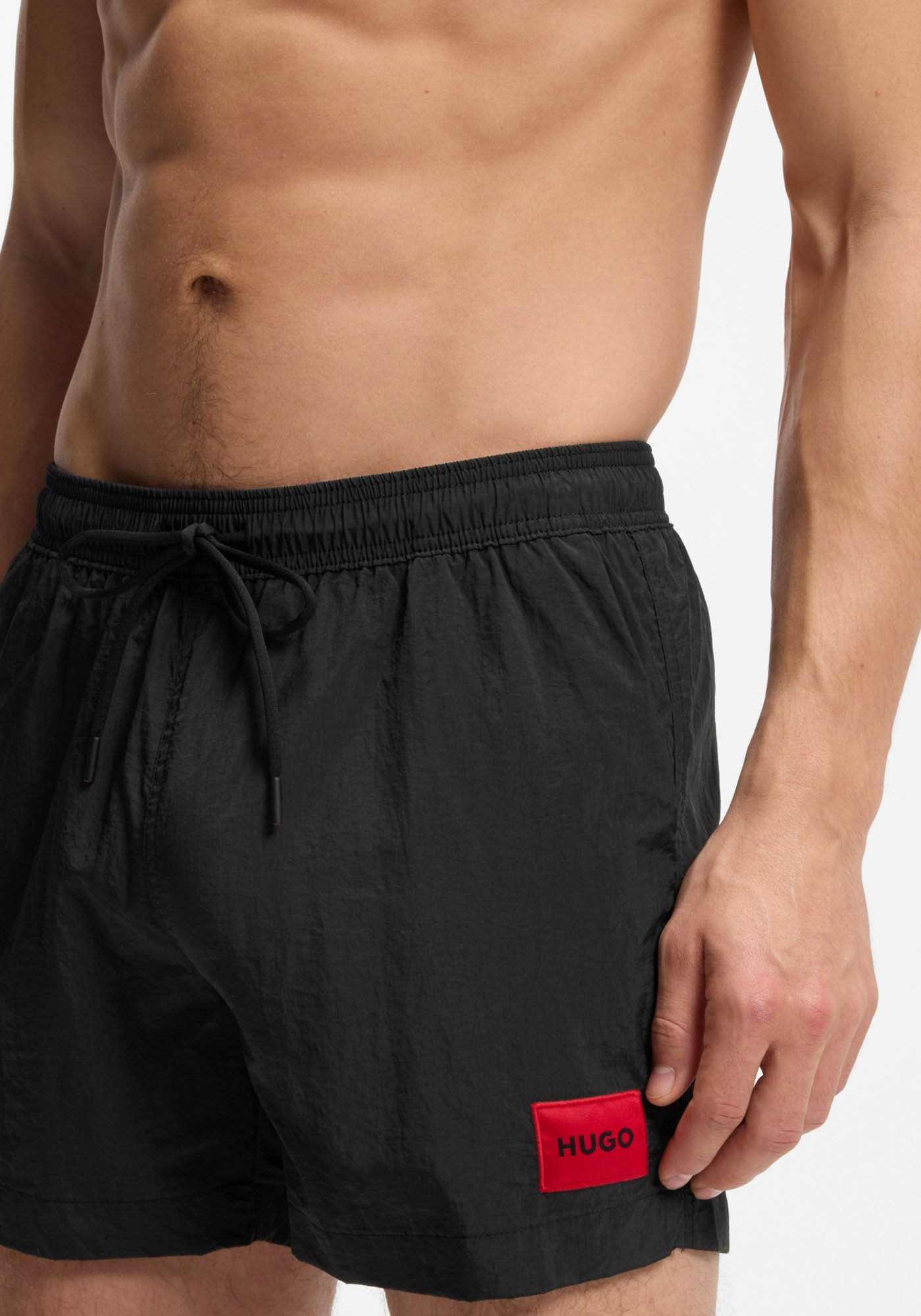 - Fully lined swim shorts with red logo label