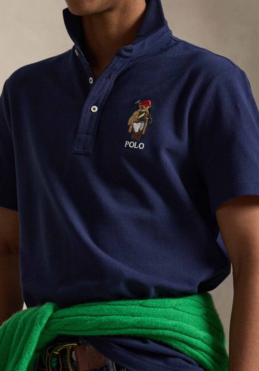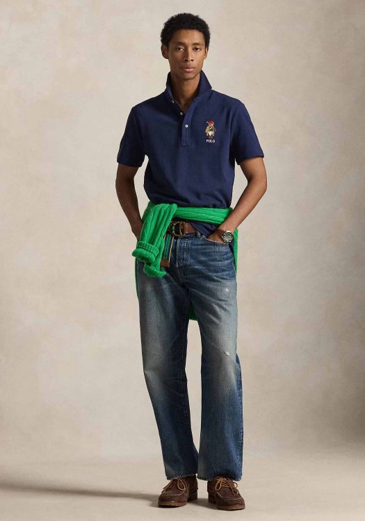 - Double-monogram patch at the left chest,
