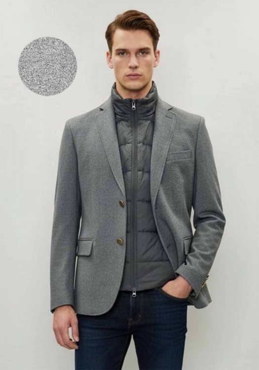 Ανδρικό σακάκι της εταιρείας Fragosto. Ανήκει στην Sandiago συλλογή της εταιρείας και χαρακτρίζεται από τον μοντέρνο σχεδιασμό του. Εύκολο να συνδυαστεί για κάθε περίσταση, από το πρωί στο γραφείο μέχρι μία κοινωνική εκδήλωση, η άνετη εφαρμογή του και το άριστης ποιότητας ύφασμά του θα σε βγάλουν από τη δύσκολη θέση. Είναι δίκουμπο και διακοσμείται με μικροσχέδιο στην ύφανση. Τέλος, έχει δύο πλαϊνές τσέπες στο ύψος της μέσης,4 εσωτερικές τσέπες και σε συνδυασμό με το διπλό άνοιγμα στο πίσω μέρος που δίνει μεγαλύτερη ευελιξία στην κίνηση καθώς και την κλασική τσέπη στο πέτο για μαντήλι.