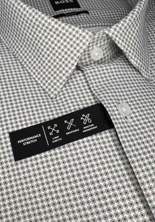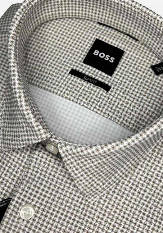 Ανδρικό πουκάμισο από την εταιρεία BOSS. Ανήκει στην H JOE συλλογή της εταιρείας και χαρακτηρίζεται από τον μικροσχέδιο σε όλη την έκταση. Είναι σε Regular γραμμή και αφήνει απαλή αίσθηση στο κορμί.