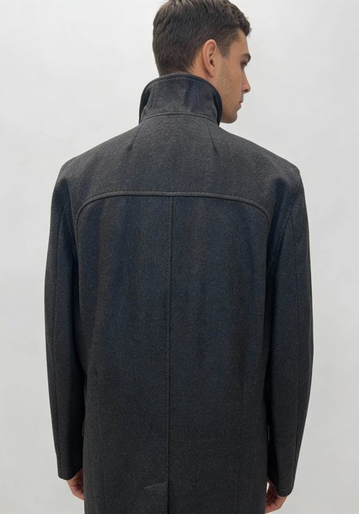 Ανδρικό μοντέρνο παλτό της εταιρείας BOSS. Ανήκει στην Hyde συλλογή και είναι προσαρμοσμένο σε μια κομψή εφαρμογή για μια τακτοποιημένη σιλουέτα. Είναι μονόχρωμο και χαρακτηρίζεται ως classic λόγω των εξωτερικών κουμπιών που διαθέτει για το κλείσιμο. τα οποία δίνουν ένα επιβλητικό ύφος. Επιπλέον, αποτελείται μείγμα πλούσιο σε μαλλί με μια νότα cashmere και διαθέτει πέτο με εγκοπή, τσέπες στο πλάι.