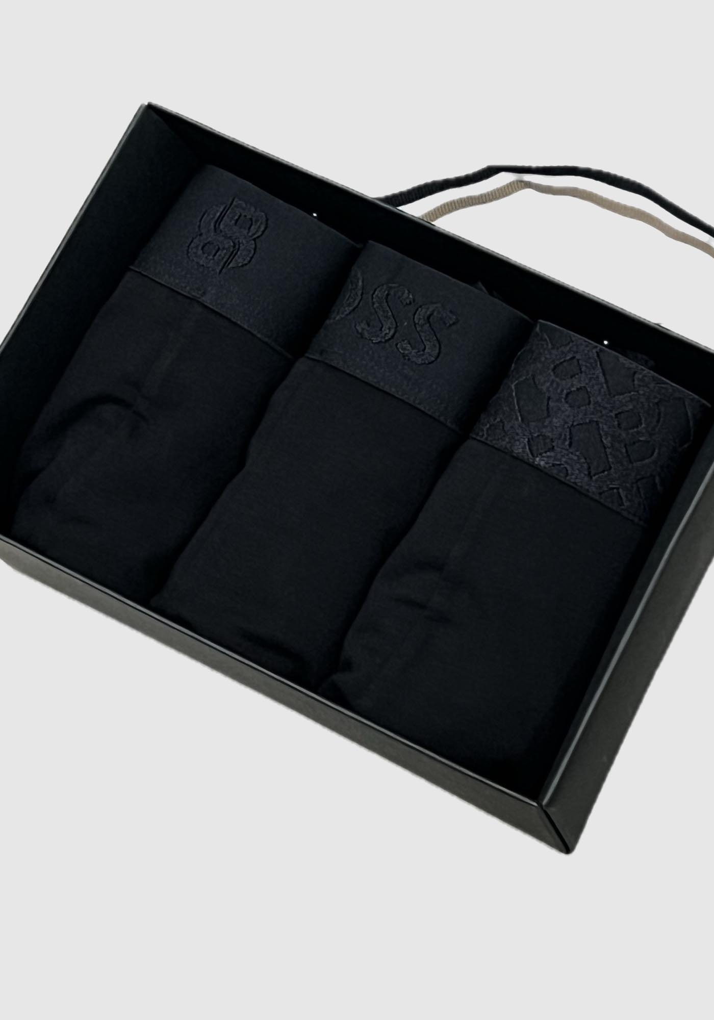 Εσώρουχα τριών τεμαχίων της εταιρείας BOSS. Αποτελούνται από βαμβάκι σε συνδυασμό με stretched cotton για άνετη εφαρμογή. Τέλος, έχουν λάστιχο στην μέση σε το νεο λογότυπο στο πάνω μέρος.