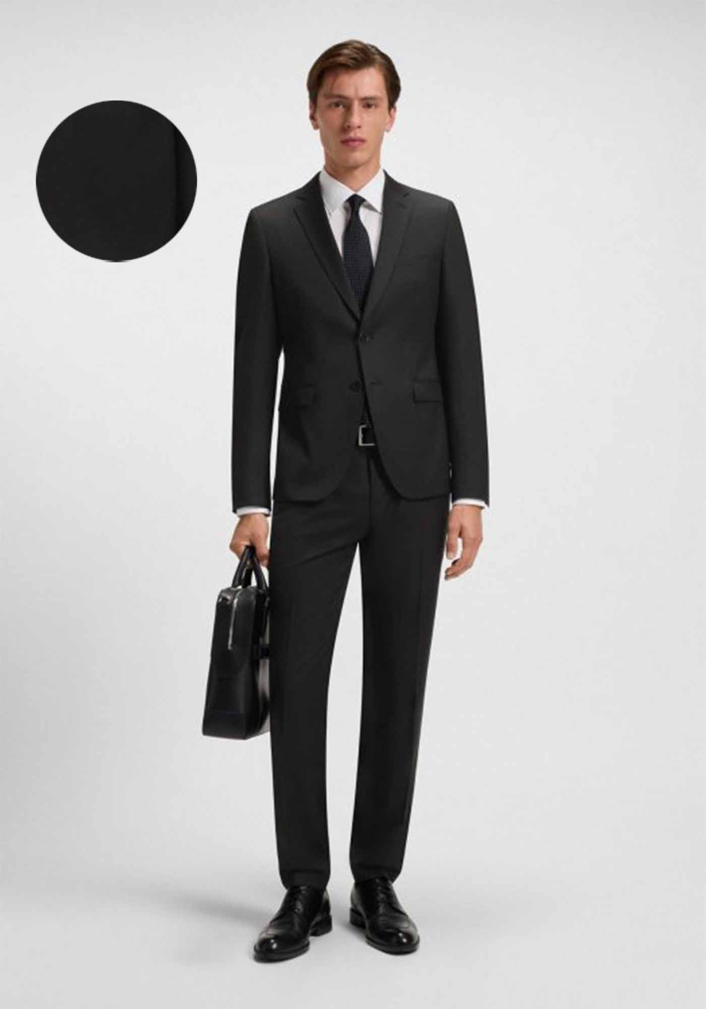Ανδρικό κοστούμι της εταιρείας BOSS. Ανήκει στην Jasper συλλογή της εταιρείας και χαρακτηρίζεται από την εξαιρετική σύνθεση του υφάσματός του. Το σακάκι είναι δίκουμπο και μεσάτο που αγκαλιάζει το σώμα, με ελαφριες βάτες στους ώμους δίνοντας την αίσθηση της κομψότητας. Διαθέτει τσέπη στο αριστερό στήθος και δύο τσέπες με καπάκι. Το παντελόνι αγκαλιάζει άψογα το κορμί και διαθέτει δύο πλαϊνές τσέπες. Τέλος, είναι ιδανική επιλογή για επίσημες εμφανίσεις.