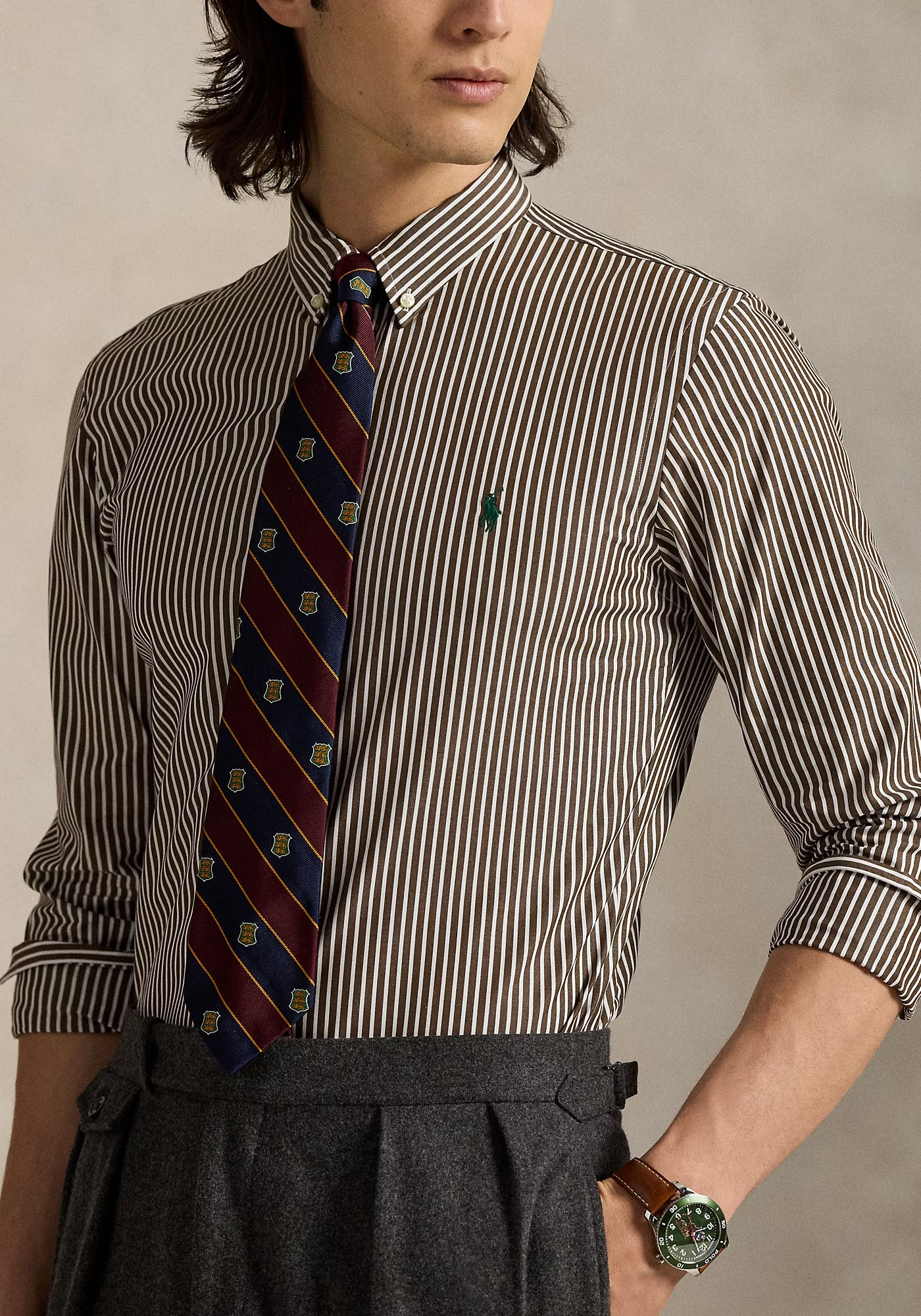 Ανδρικό Πουκάμισο της εταιρείας Polo Ralph Lauren. Ανήκει στην Stripe συλλογή της εταιρείας και είναι σε Custom γραμμή, από απαλό ύφασμα υψηλής ποιότητας. Δακοσμείται με ριγέ σχέδιο και χαρακτηρίζεται από την μοναδική απαλή αίσθηση, ενώ τέλος το λογότυπο της εταιρείας βρίσκεται στο ύψος του στήθους.