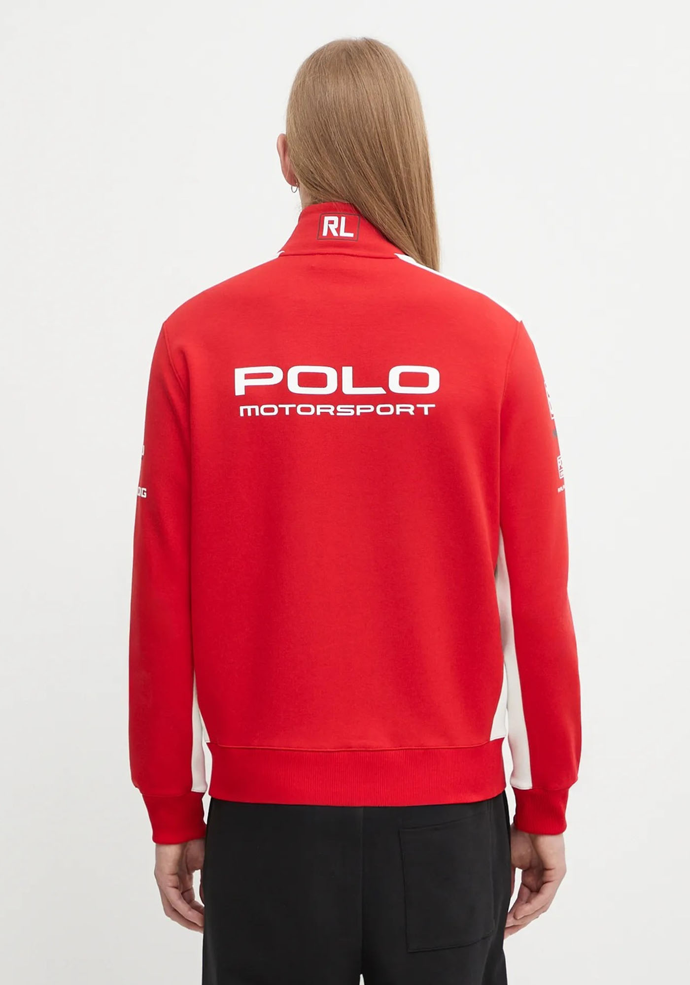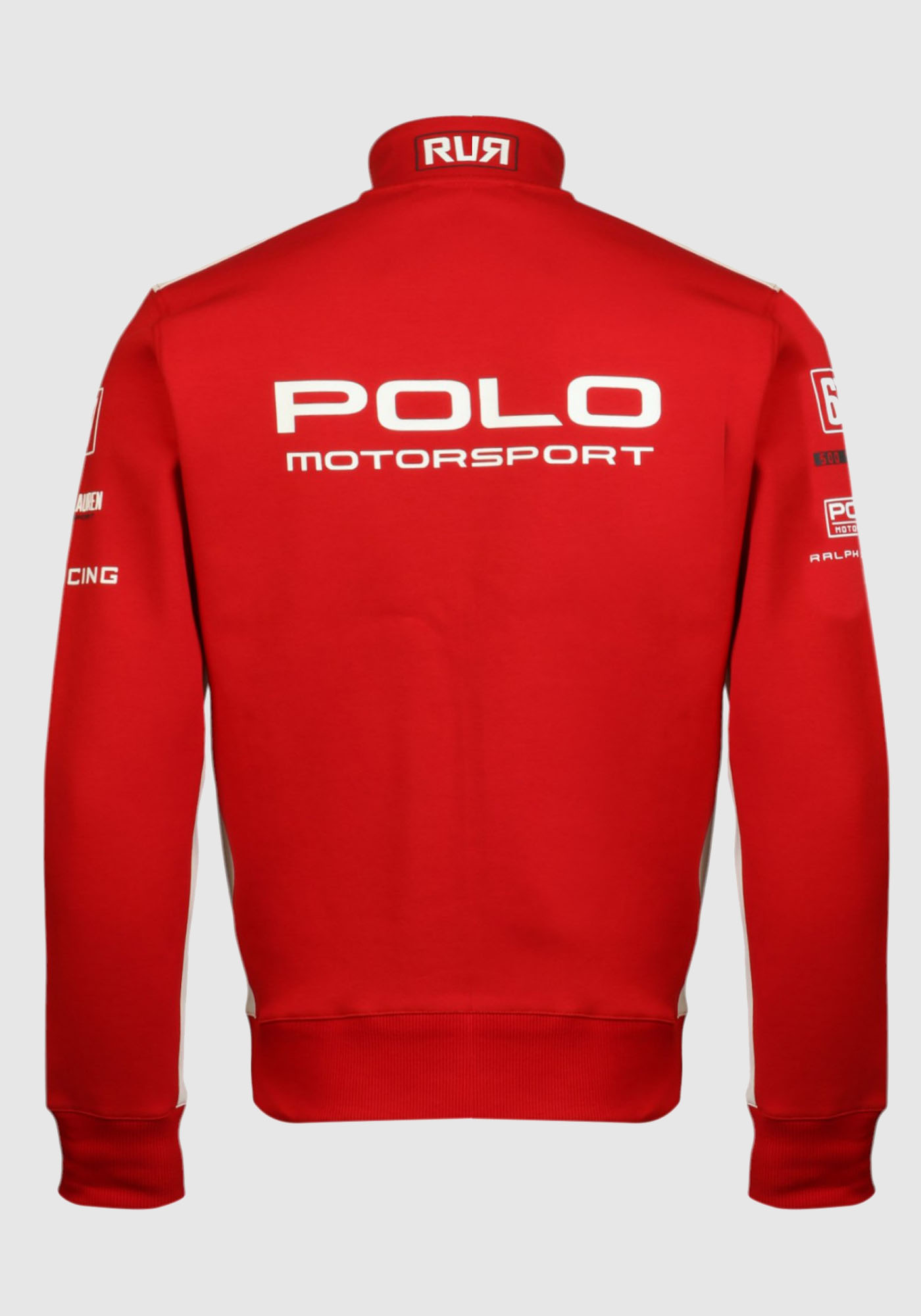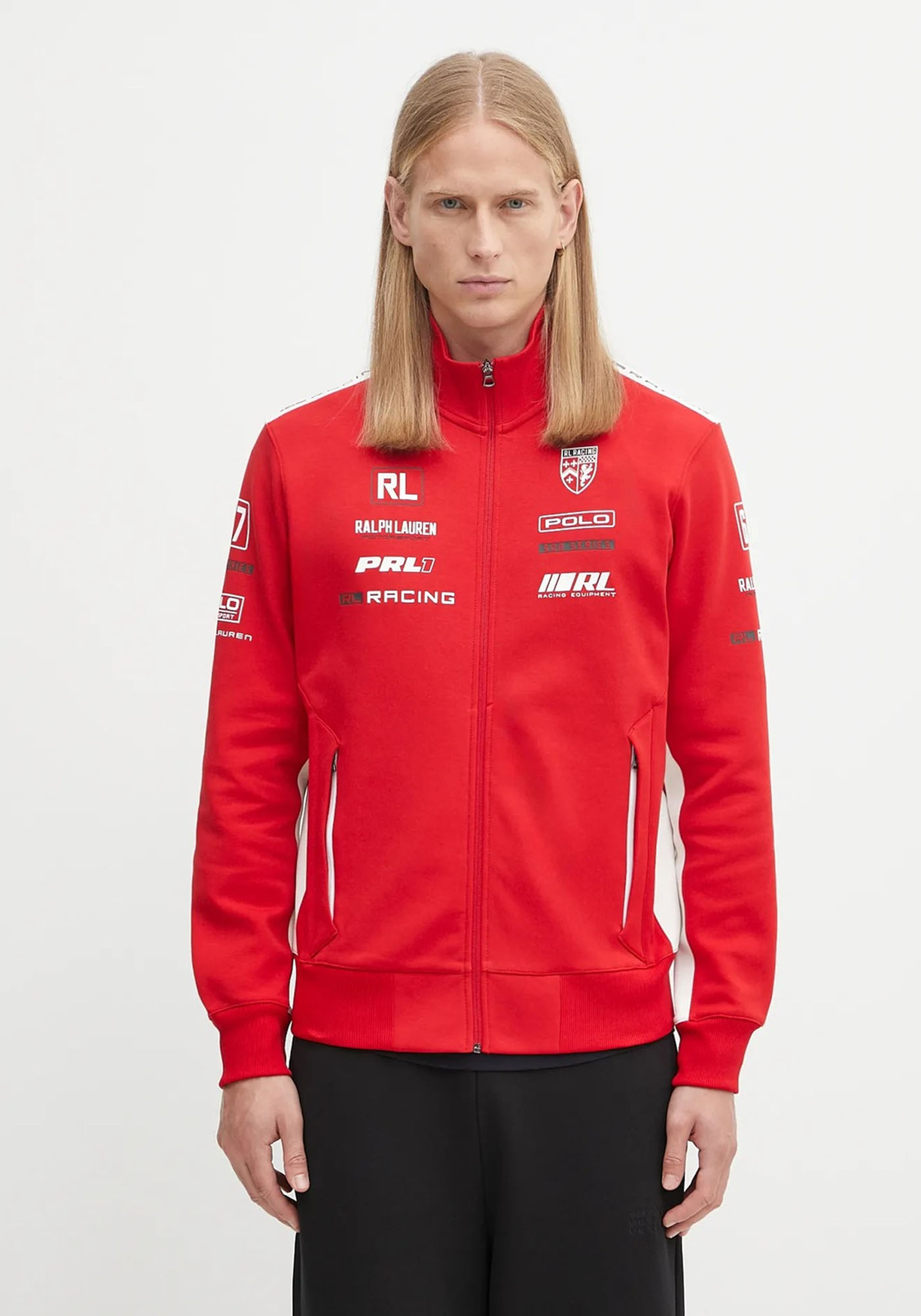 Ανδρική ζακέτα από την εταιρεία Polo Ralph Lauren. Ανήκει στην Double Knit συλλογή της εταιρείας και είναι μονόχρωμη, σε κανονική γραμμή, ενώ διακοσμείται με διάφορα RL Racing prints σε όλη την έκταση. Διαθέτει δύο πλαϊνες τσέπες, λάστιχο στα μανίκια και στην μέση για σταθερό κράτημα, ενώ το φερμουάρ χαρακτηρίζεται ως full zip λόγω της έκτασης του.