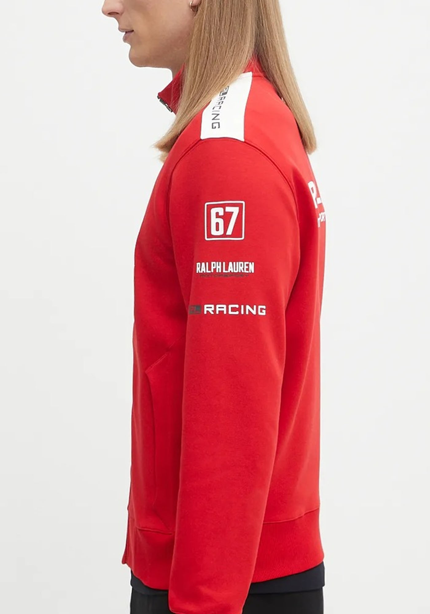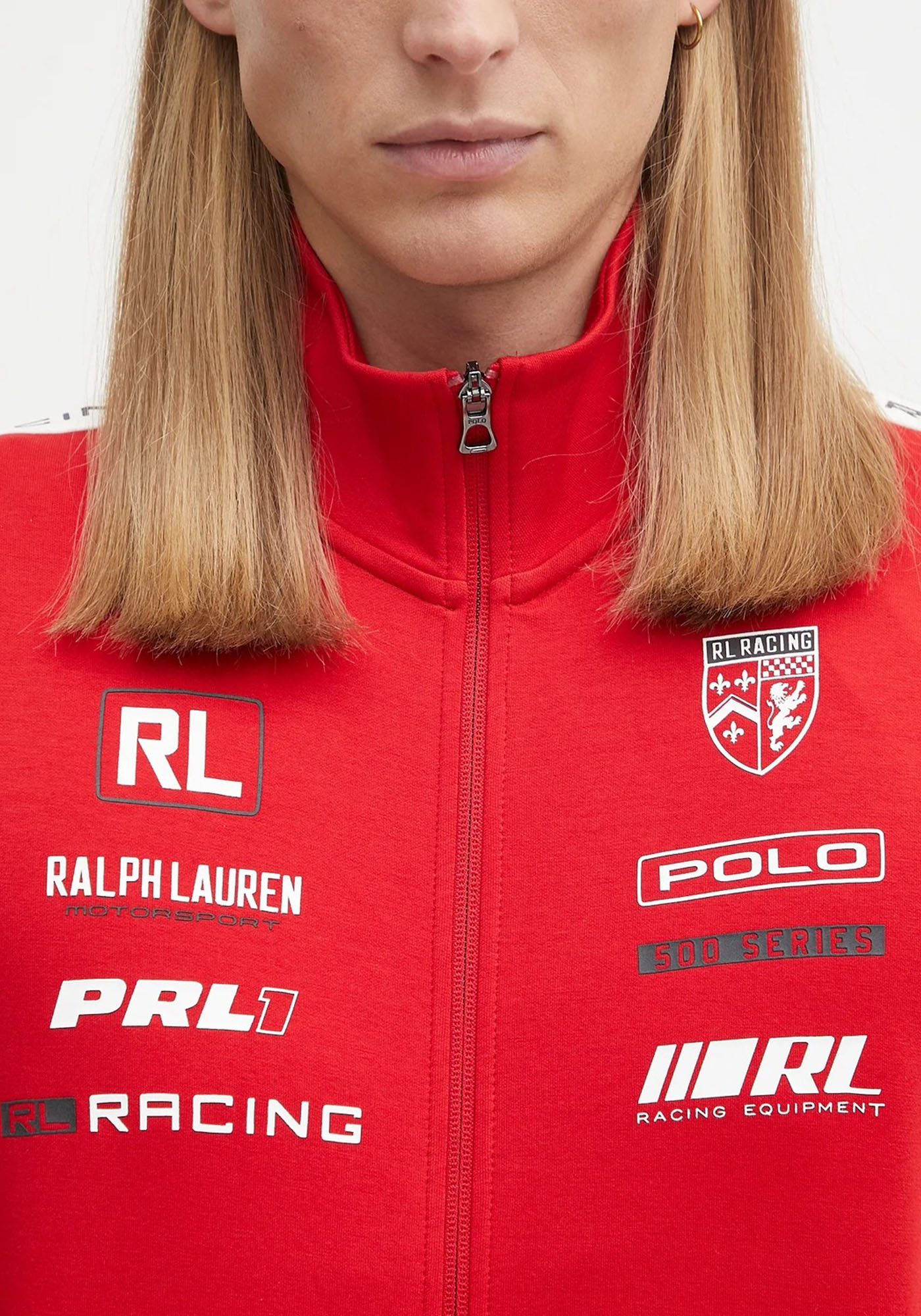 - Raglan sleeves with "RL Racing" print on shoulders and graphic detailing on both sleeves
