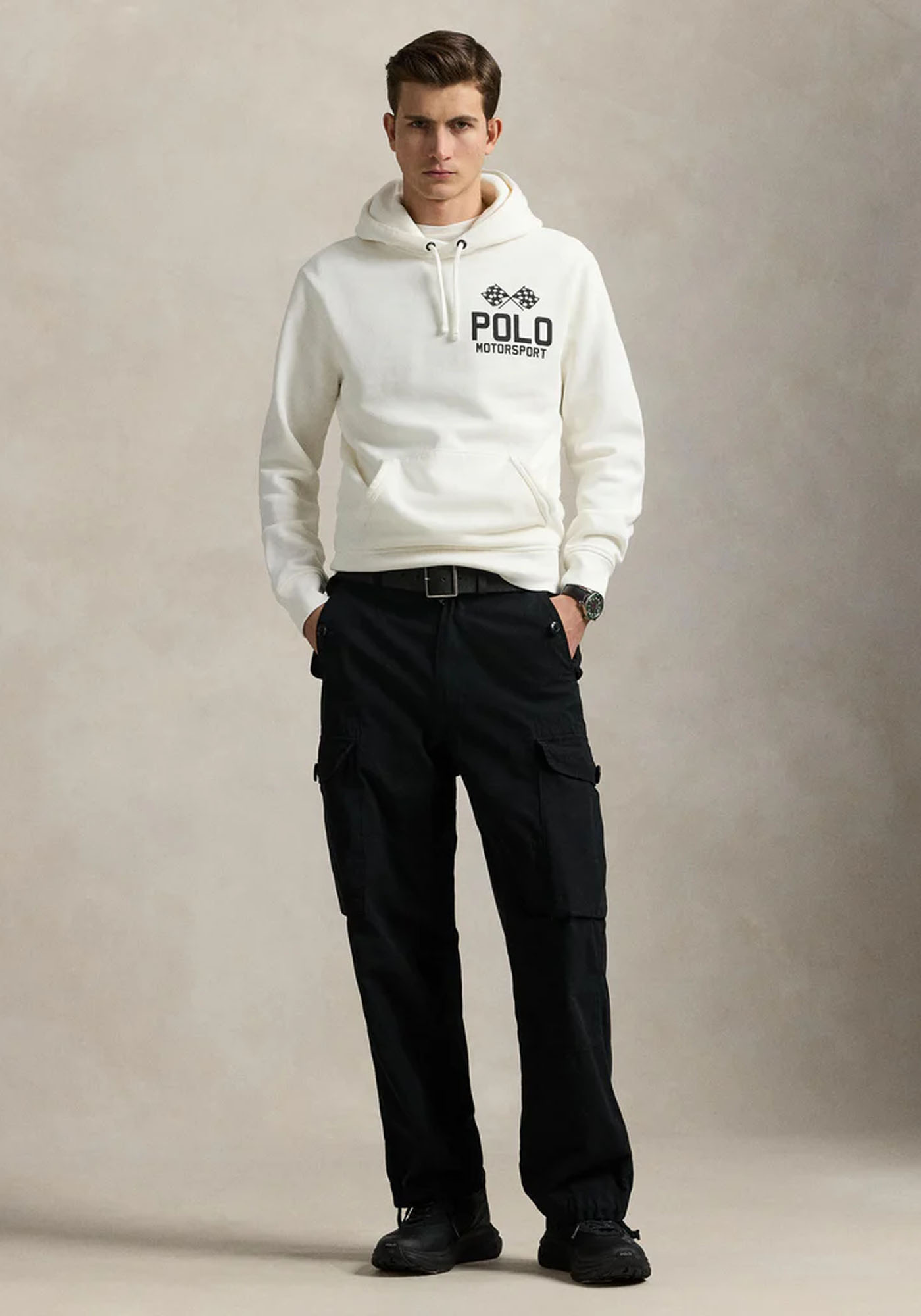 Aνδρική Φούτερ μπλούζα της εταιρείας Polo Ralph Lauren. Ανήκει στην Fleece συλλογή της εταιρείας και αποτελείται από ύφασμα υψηλής ποιότητας με εσωτερική fleece επένδυση για να κρατάει ζεστό το σώμα. Είναι μονόχρωμο και σε κανονική γραμμή, ενώ το λογότυπο διακοσμεί την μπλούζα στο ύψος του στήθους. Τέλος, διαθέτει κουκούλα και λάστιχο στα μανίκια και στην μέση για σταθερό κράτημα.