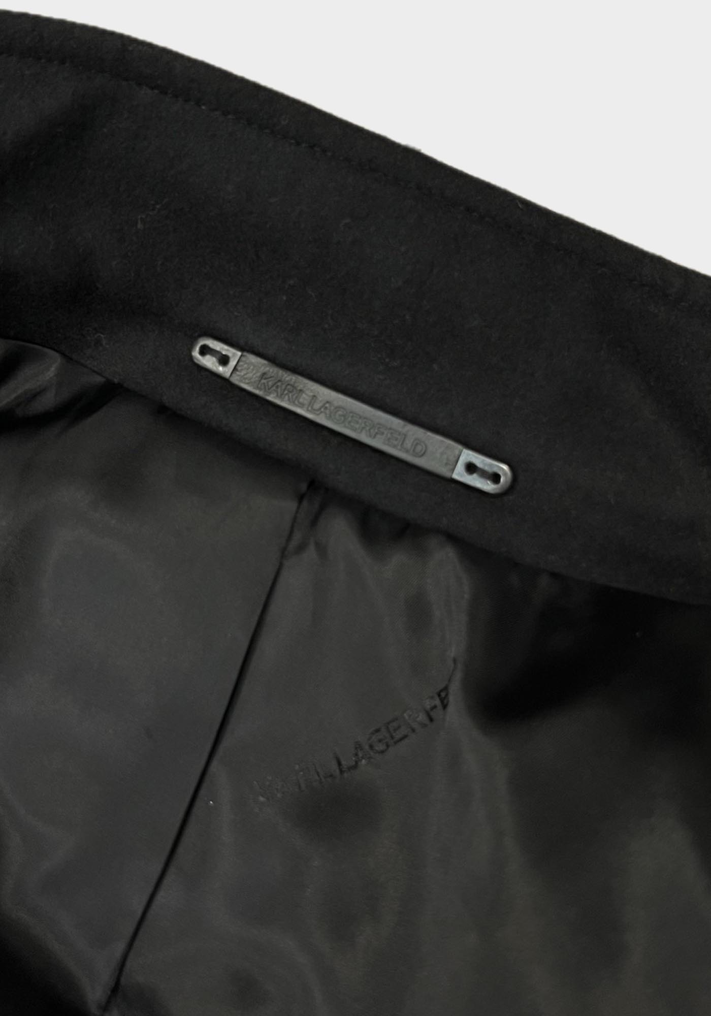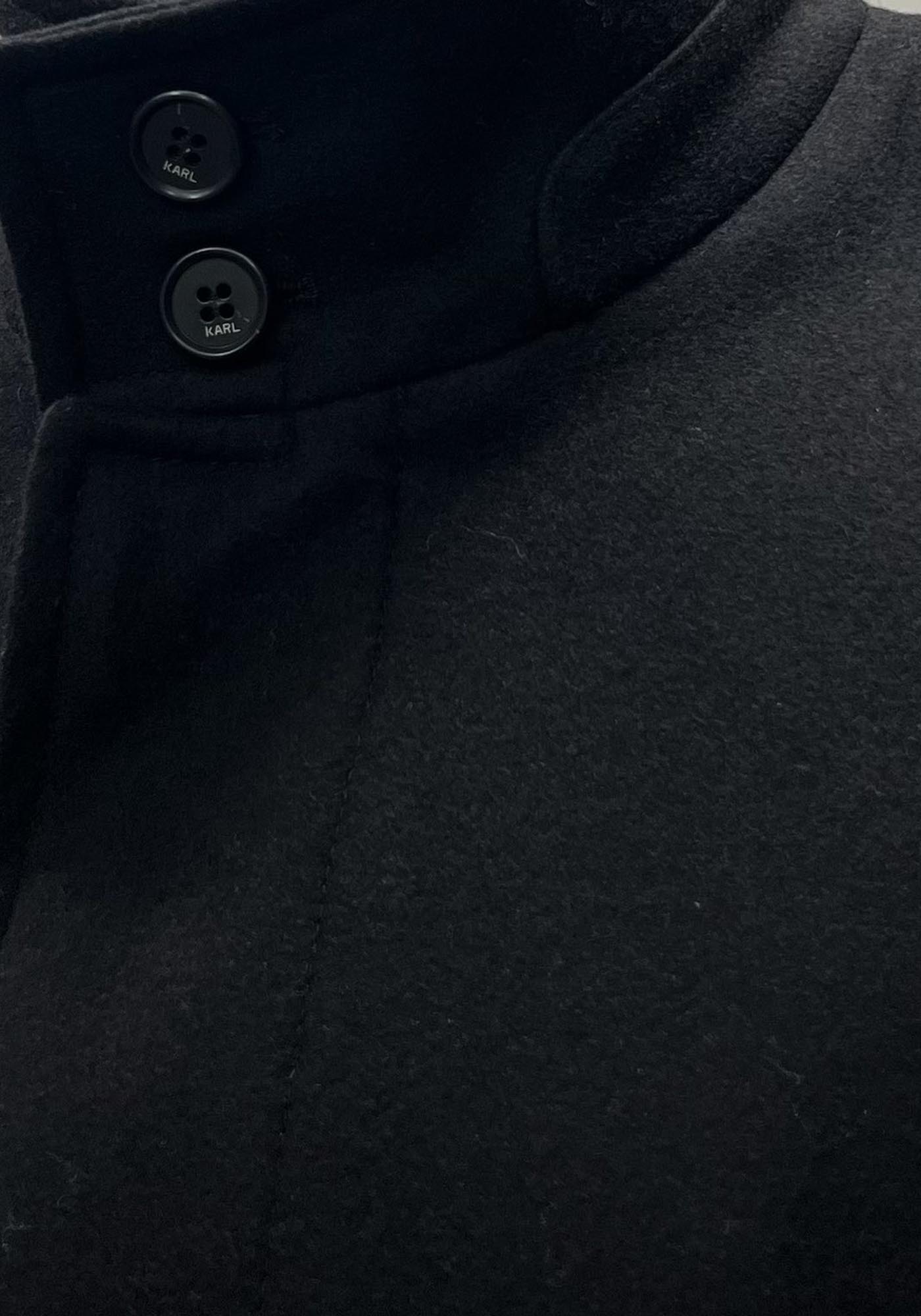 Ανδρικό παλτό της εταιρείας Karl Lagerfeld. Ανήκει στην Basic συλλογή της εταιρείας και χαρακτηρίζεται από τον minimal σχεδιασμό. Αποτελείται από μαλακό ύφασμα υψηλής ποιότητας, ενώ είναι μονόχρωμο και σε strict γραμμή, η οποία δίνει ένα επιβλητικό ύφος.