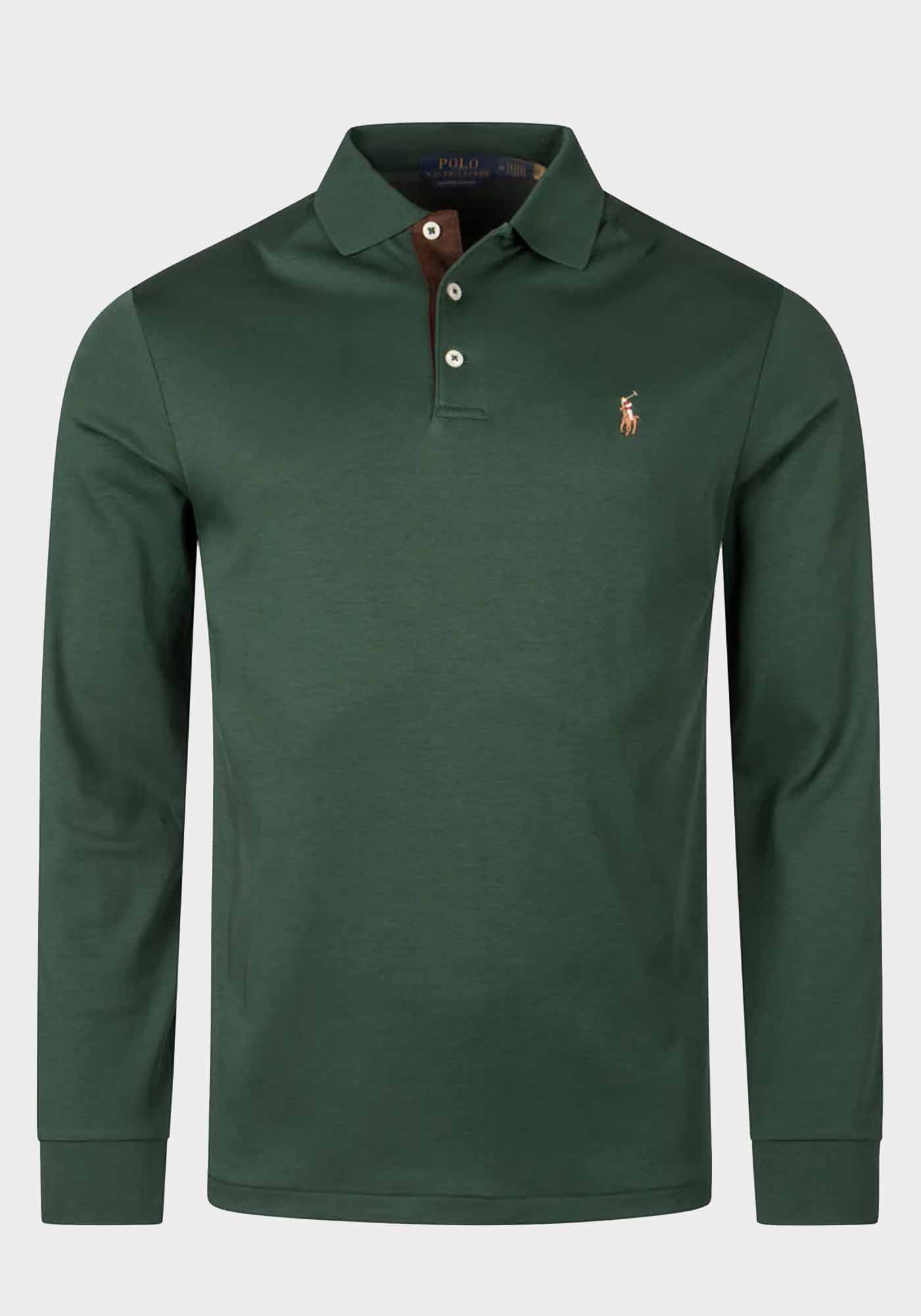 Ανδρική μπλούζα της εταιρείας Polo Ralph Lauren. Ανήκει στην Soft Cotton Polo συλλογή της εταιρείας και χαρακτηρίζεται από την μοναδική αίσθηση που αφήνει στο κορμί. Είναι διακοσμημένη με το έγχρωμο λογότυπο της εταιρείας το οποίο είναι κεντημένο στο ύψος του στήθους, σε συνδυασμό με ένα contrast layer κα΄τα μήκος του γιακά.