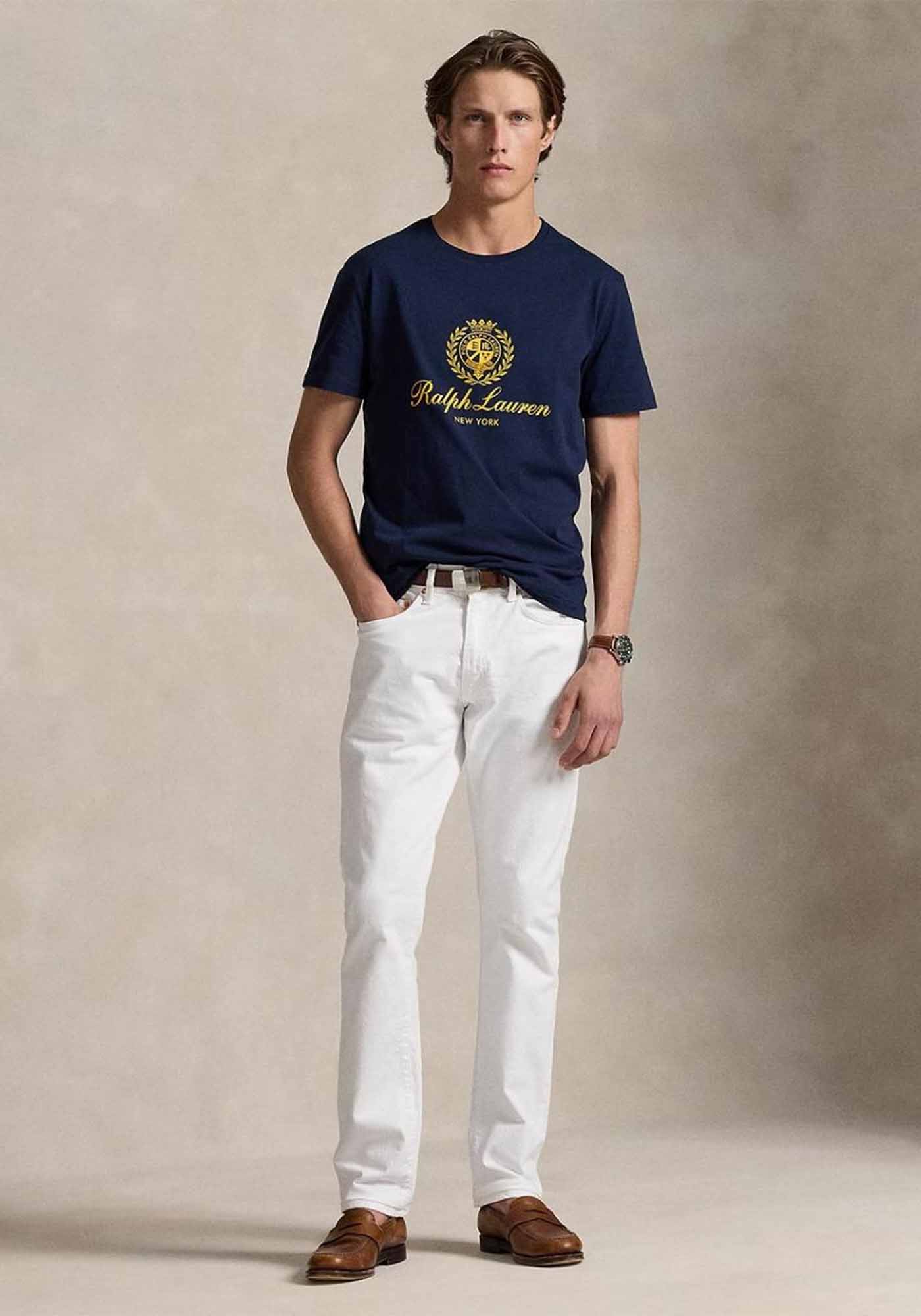 Κοντομάκινη μπλούζα της εταιρείας Polo Ralph Lauren. Ανήκει στην Jersey συλλογή της εταιρείας και χαρακτηρίζεται από τον minimal χαρακτήρα. Είναι σε Standard γραμμή και τονίζει την σιλουέτα. Διακοσμείται με το λογότυπο της εταιρείας στο ύψος του στήθους, ενώ τέλος διαθέτει ribbed λαιμόκοψη και λάστιχο στα μανίκια.