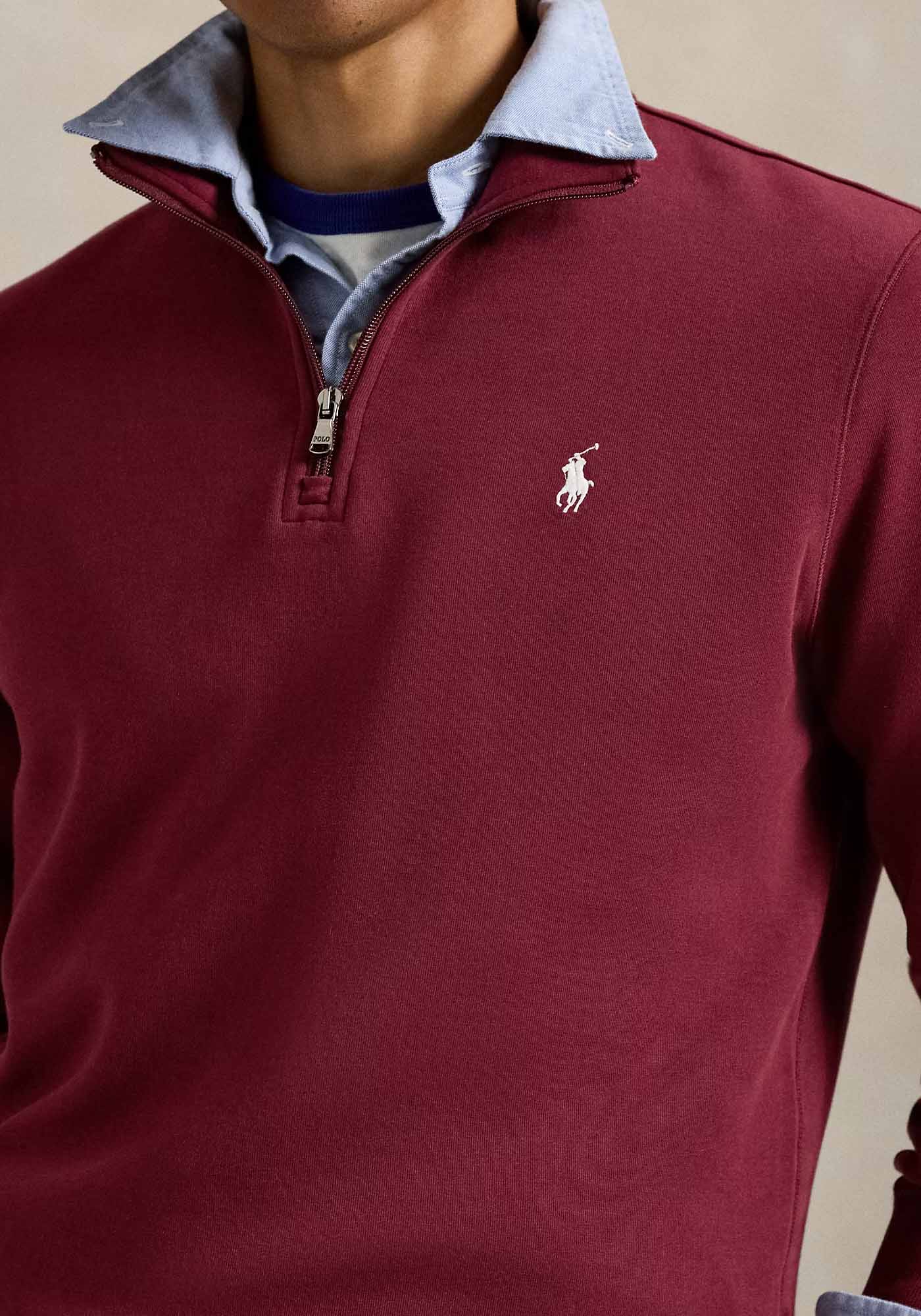 Aνδρικό Half Zip Pulloverr της εταιρείας Polo Ralph Lauren. Ανήκει στην Quarter-Zip συλλογή της εταιρείας και χαρακτηρίζεται από τον zip γιακά. Είναι μονόχρωμο και σε κανονική γραμμή, ενώ το λογότυπο βρίσκεται κεντημένο στο ύψος του στήθους. Τέλος, διαθέτει stand up γιακά και λάστιχο στα μανίκια και στην μέση για σταθερό κράτημα.