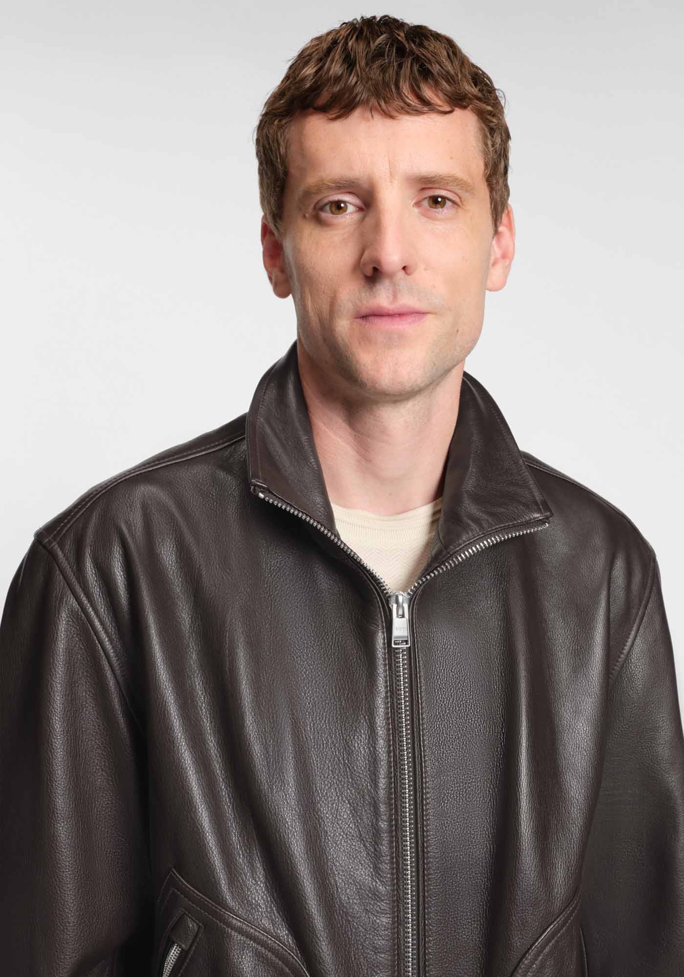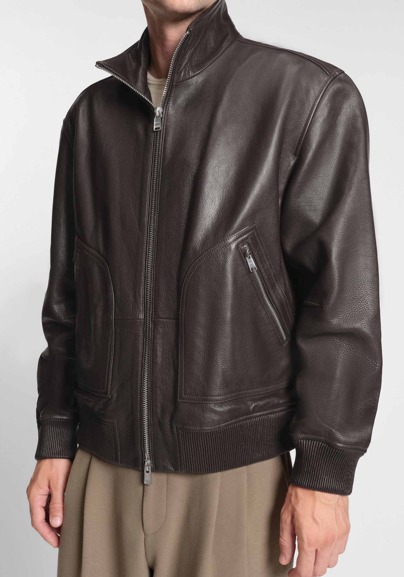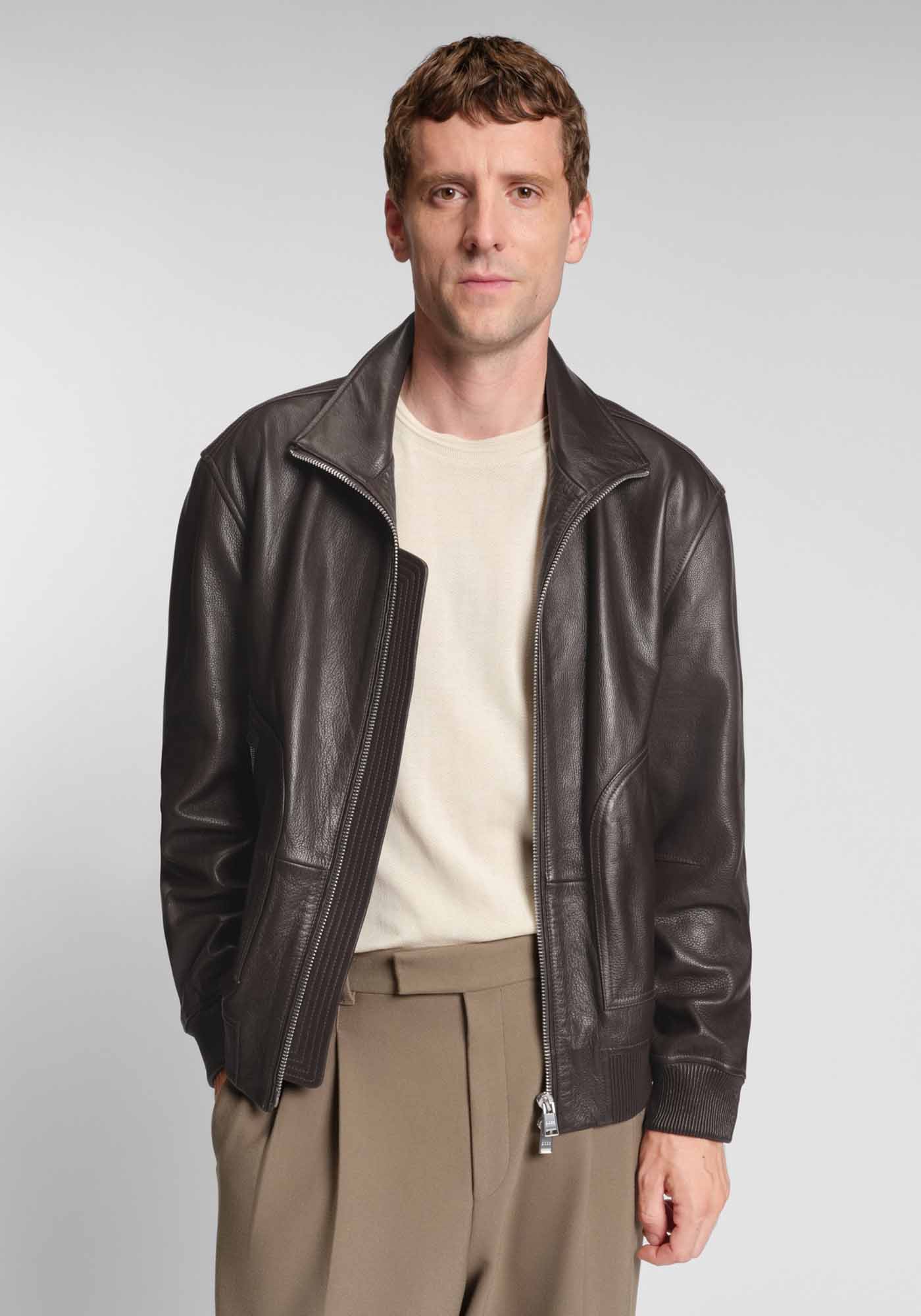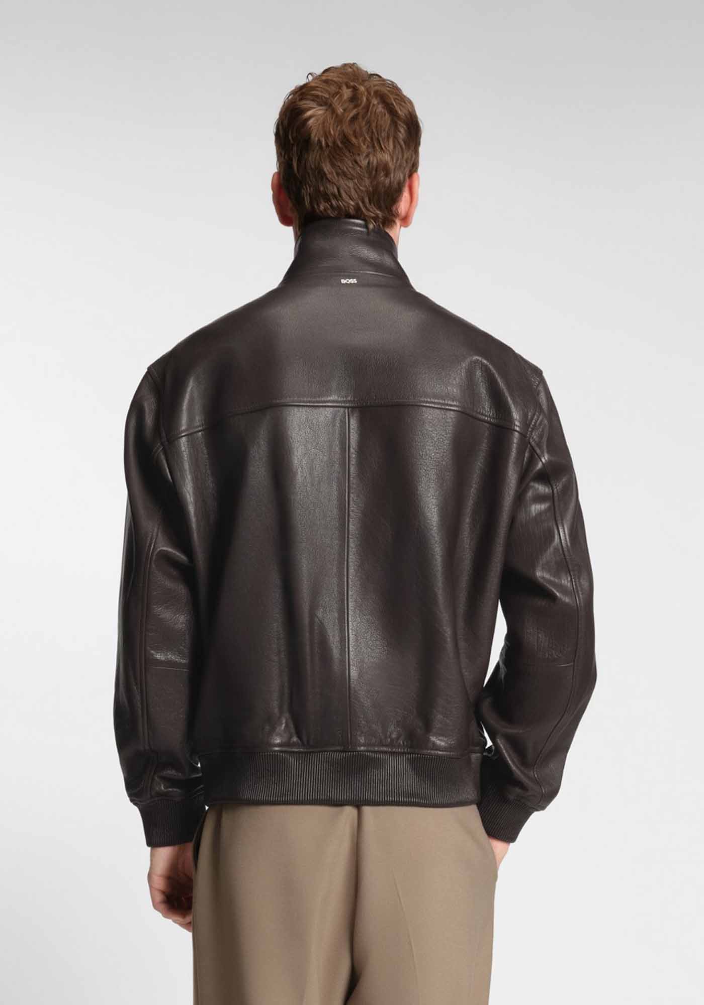 Aνδρικό Δερμάτινο Jacket της εταιρείας HUGO. Ανήκει στην C Mander συλλογή της εταιρείας και αποτελείται από δέρμα υψηλής ποιότητας. Είναι μονόχρωμο και σε κανονική γραμμή, ενώ το λογότυπο αναγράφεται στο πίσω μέρος. Τέλος, διαθέτει Stand collar, λάστιχο σε μανίκια και μέση για σταθερό κράτημα και τσέπες στο πλάι.