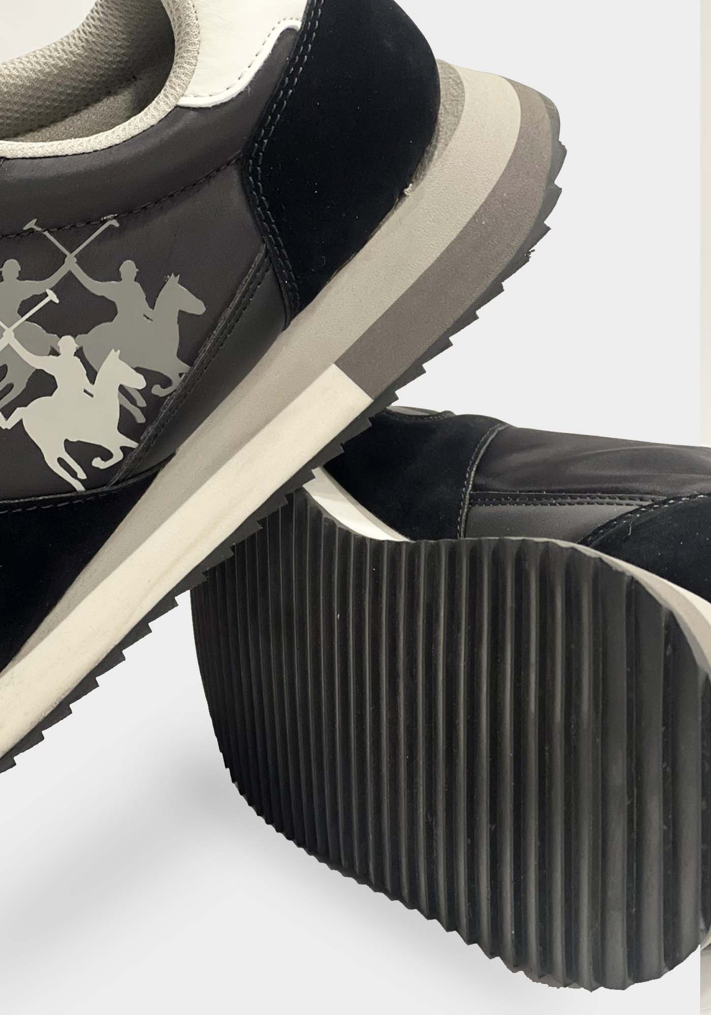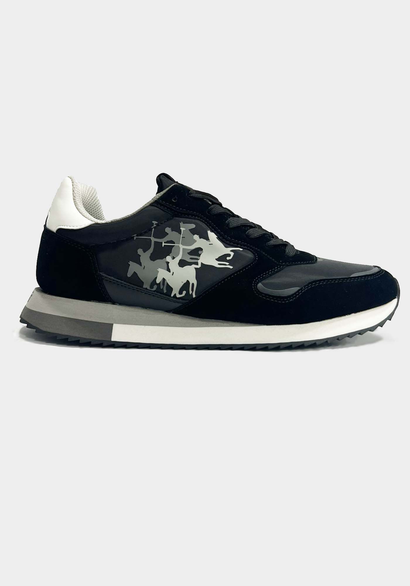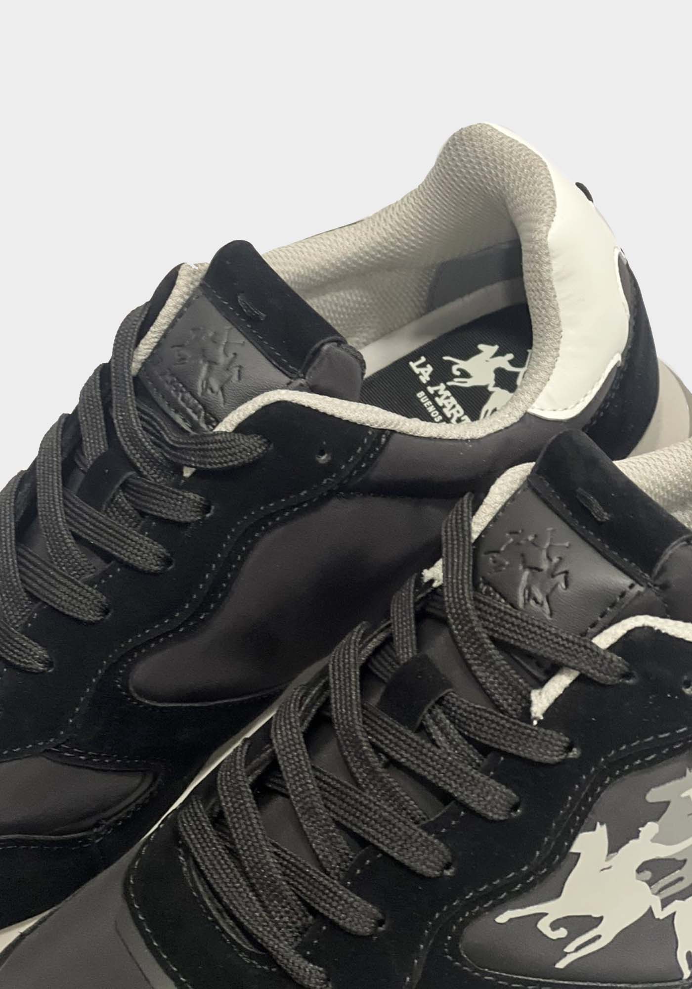 Ανδρικά Trainers παπούτσια της εταιρείας La Martina. Ανήκουν στην Suede συλλογή της εταιρείας και χαρακτηρίζονται από τον αθλητικό τους σχεδιασμό. Αποτελούνται από suede δέρμα και συνιστώνται τόσο για καθημερινή χρήση όσο και για πιο επίσημες εμφανίσεις. Η σόλα είναι πολύ ελαφριά, για να αποφεύγονται οι καρδασμοί, ενώ είναι διακοσμημένα με το λογότυπο, το οποίο είναι στο πλάι.