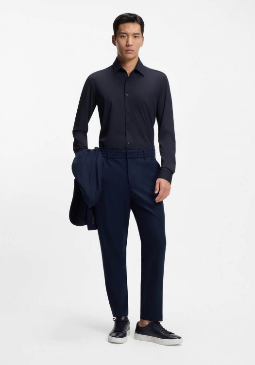 Το παντελόνι είναι  σε στενή γραμμή. Διαθέτει κούμπωμα με φερμουάρ, δύο πλαϊνές και δύο πίσω τσέπες.