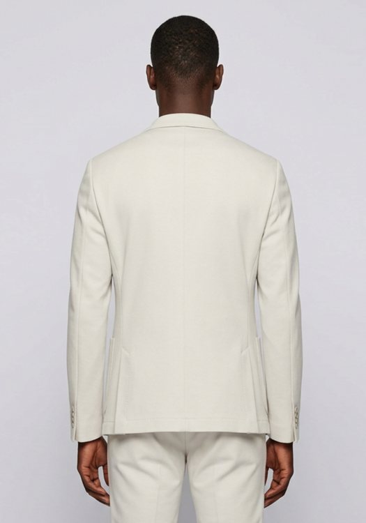 Το σακάκι έχει μοντέρνα εφαρμογή που αναδεικνύει το σώμα, διαθέτει στενή μέση, δύο τσέπες που κλείνουν με καπάκι, τσέπη στο στήθος και ελαφριά επένδυση στον ώμο.