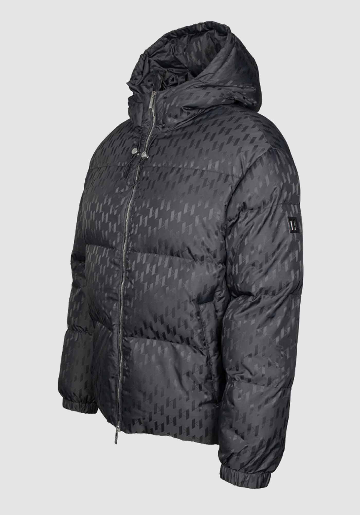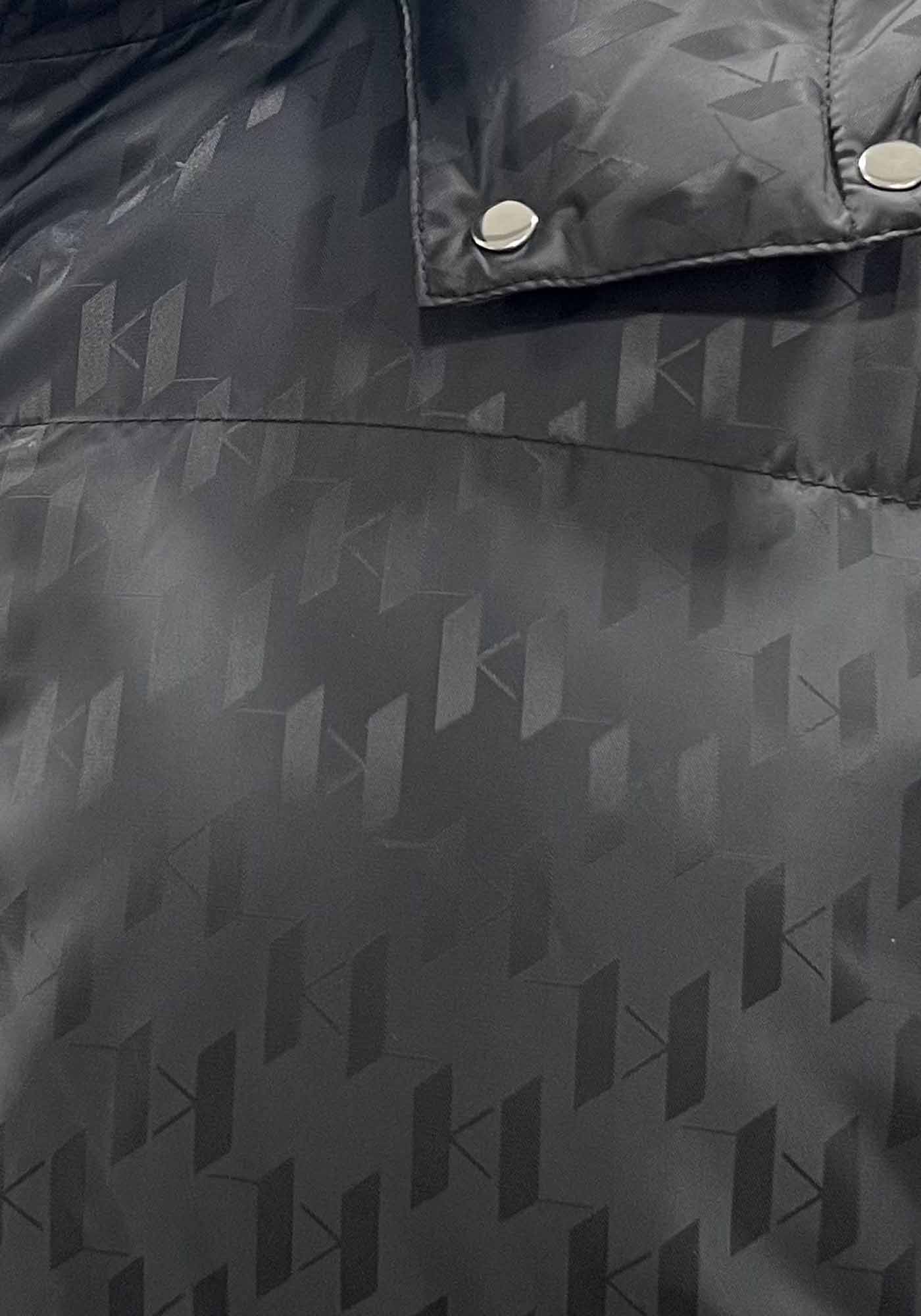 Ανδρικό αδιάβροχο μπουφάν από την εταιρεία Karl Lagerfeld. Ανήκει στην Monogram συλλογή της εταιρείας και κρατάει ζεστό το σώμα. Είναι μονόχρωμο, με allover print και διαθέτει stand up γιακά, κουκούλα για να διατηρείται ζεστός ο λαιμός, όπως επίσης και τσέπες στο πλάι.