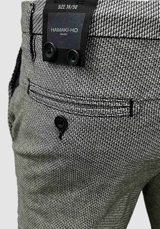 Ανδρικό παντελόνι της εταιρείας Hamaki Ho. Ανήκει στην Chino συλλογή και είναι διακοσμημένο με διακριτικό μικροσχέδιο στην ύφανση και είναι σε modern γραμμή.