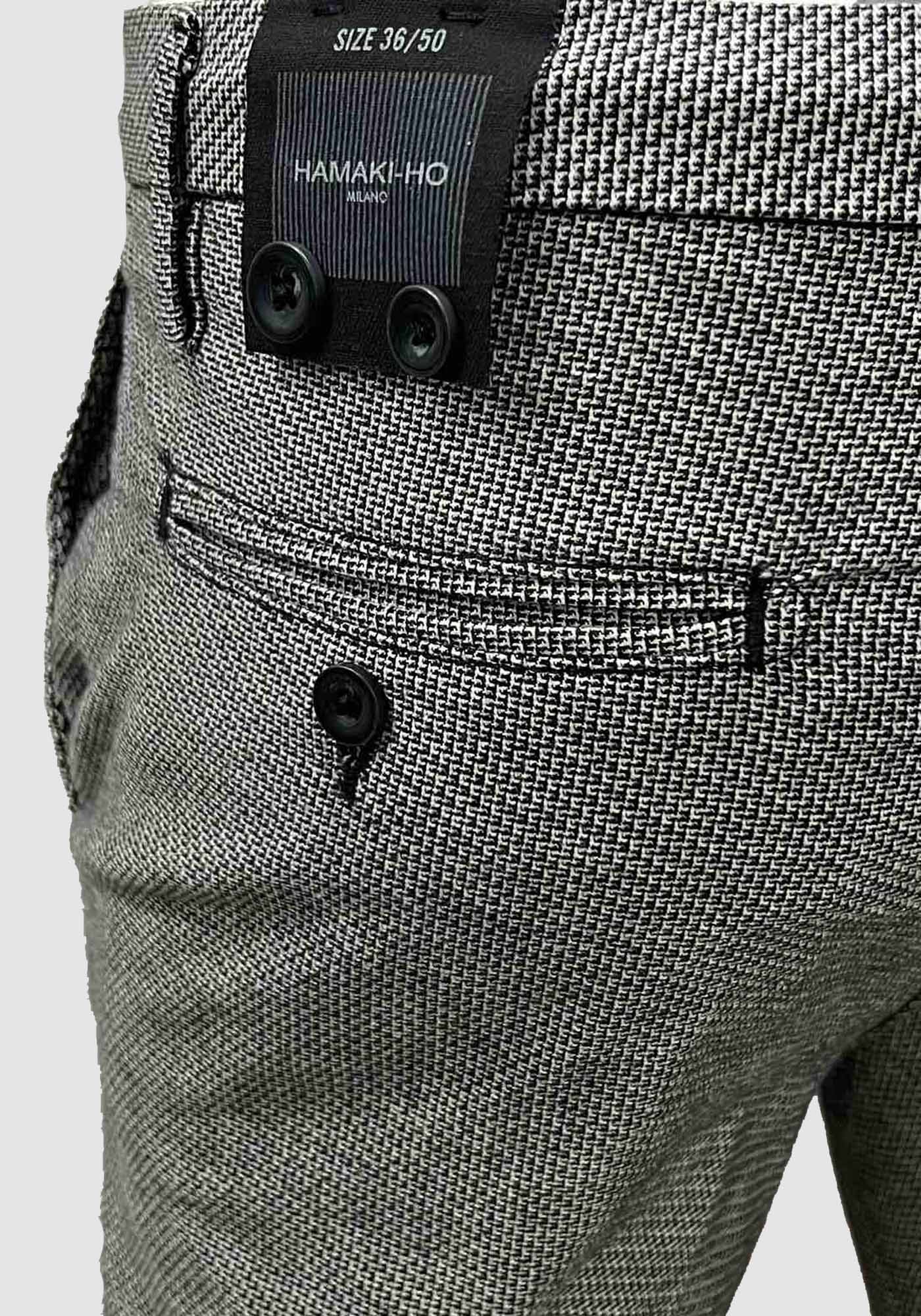 Ανδρικό παντελόνι της εταιρείας Hamaki Ho. Ανήκει στην Chino συλλογή και είναι διακοσμημένο με διακριτικό μικροσχέδιο στην ύφανση και είναι σε modern γραμμή.