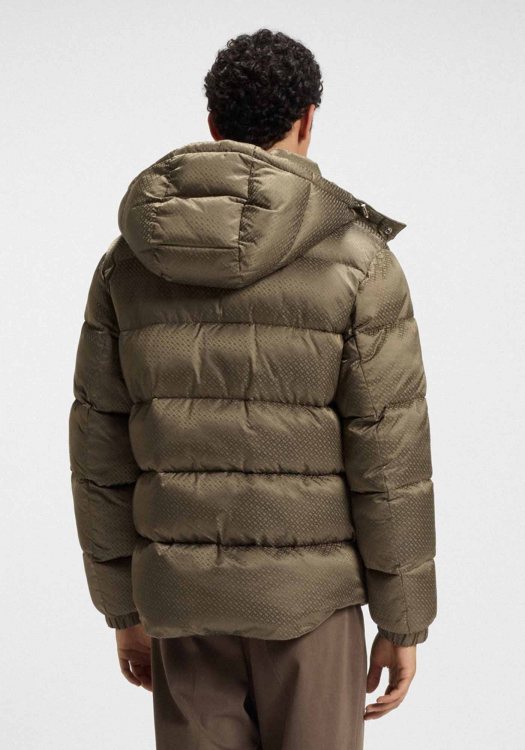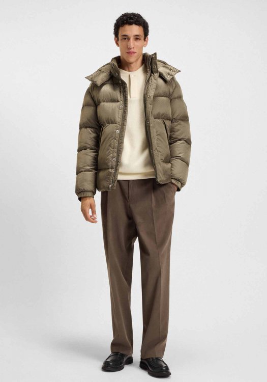 Ανδρικό μπουφάν από την εταιρεία BOSS. Ανήκει στην H Corbinian5 συλλογή της εταιρείας και χαρακτηρίζεται από τον άψογο σχεδιασμό του. Είναι μονόχρωμο και σε κανονική γραμμή, ενώ διακοσμείται με το λογότυπο της εταιρείας το οποίο είναι σε επαναλαμβανομενο μοτίβο. Διαθέτει κουκούλα, λάστιχο στα μανίκια, δύο πλαϊνες τσέπες που κλείνουν με φερμουάρ, ενώ τέλος το φερμουάρ χαρακτηρίζεται ως full zip λόγω της έκτασης του.