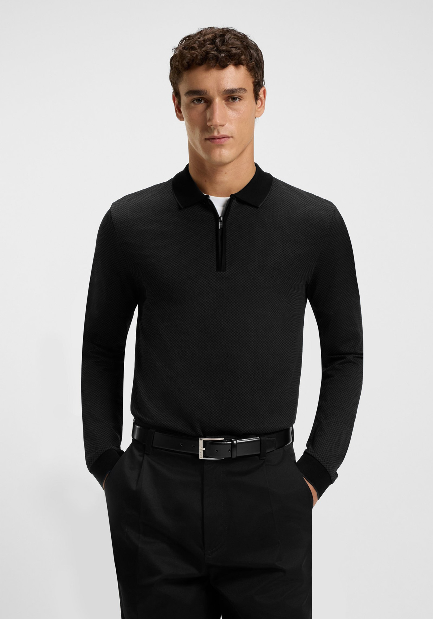 Ανδρική Polo της εταιρείας BOSS. Ανήκει στην H Peduzzi συλλογή της εταιρείας και χαρακτηρίζεται από το φερμουάρ σε συνδυασμό με το allover effect που καλύπτει όλη την επιφάνεια και προκαλεί διακριτική διχρωμία. Τέλος, είναι από απαλό ύφασμα υψηλής ποιότητας και σε άνετη γραμμή.