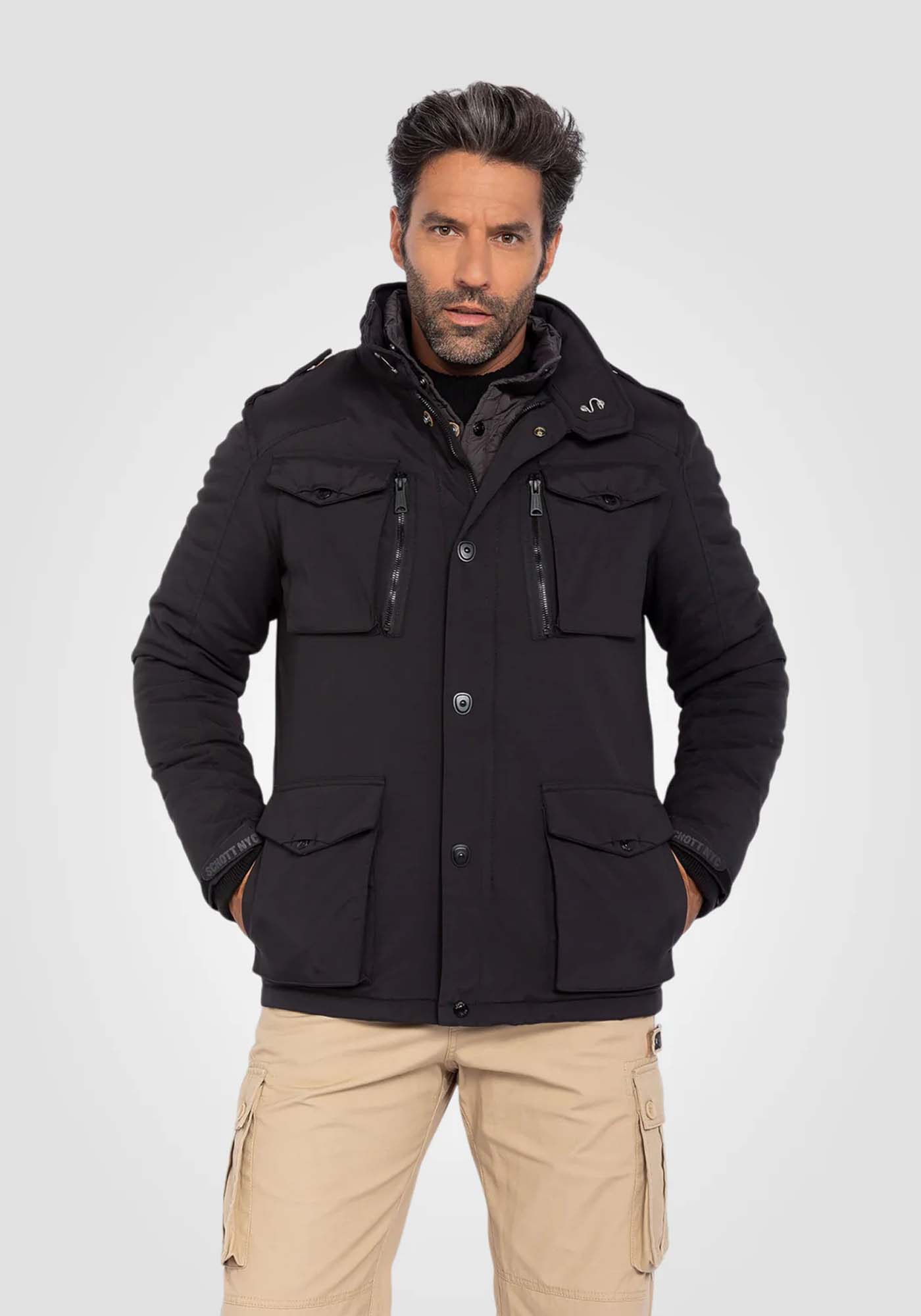 Ανδρικό μπουφάν της εταιρείας Schott N.Y.C. Ανήκει στην Field συλλογή και χαρακτηρίζεται από τις τσέπες στην εξωτερική επιφάνεια που δίνουν πιο cargo ήφος. Διαθέτει stand up collar που σφραγίζει με κουμπιά, ενώ τελος το λογότυπο βρίσκεται στο ύψος του στήθους.