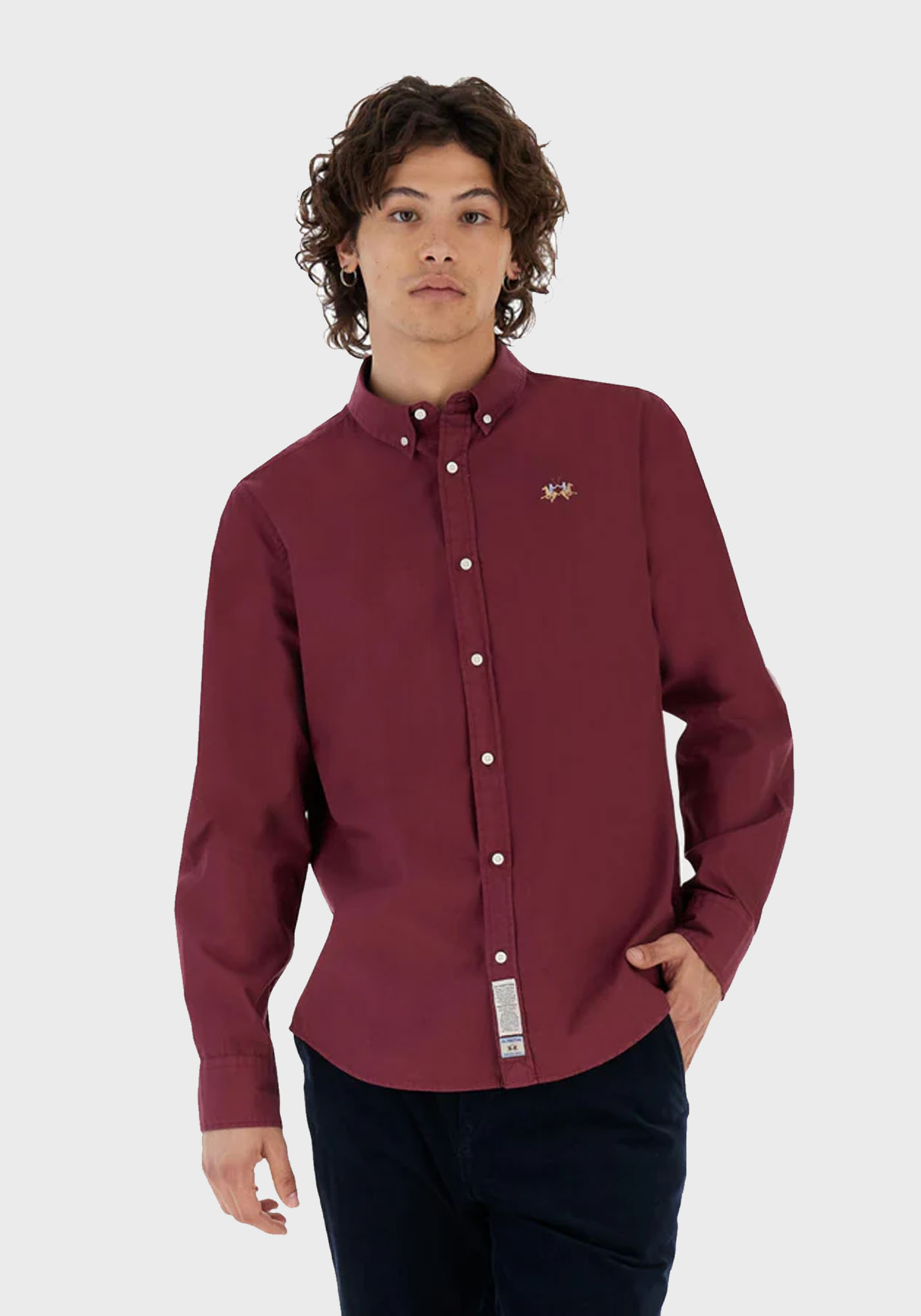 Ανδρικό πουκάμισο της εταιρείας La Martina. Ανήκει στην Leon συλλογή της εταιρείας και χαρακτηρίζεται από τον minimal σχεδιασμό. Είναι σε slim γραμμή, από απαλό ύφασμα υψηλής ποιότητας, ενώ τέλος διακοσμείται με το έγχρωμο λογότυπο της εταιρείας το οποίο είναι κεντημένο στο ύψος του στήθους.