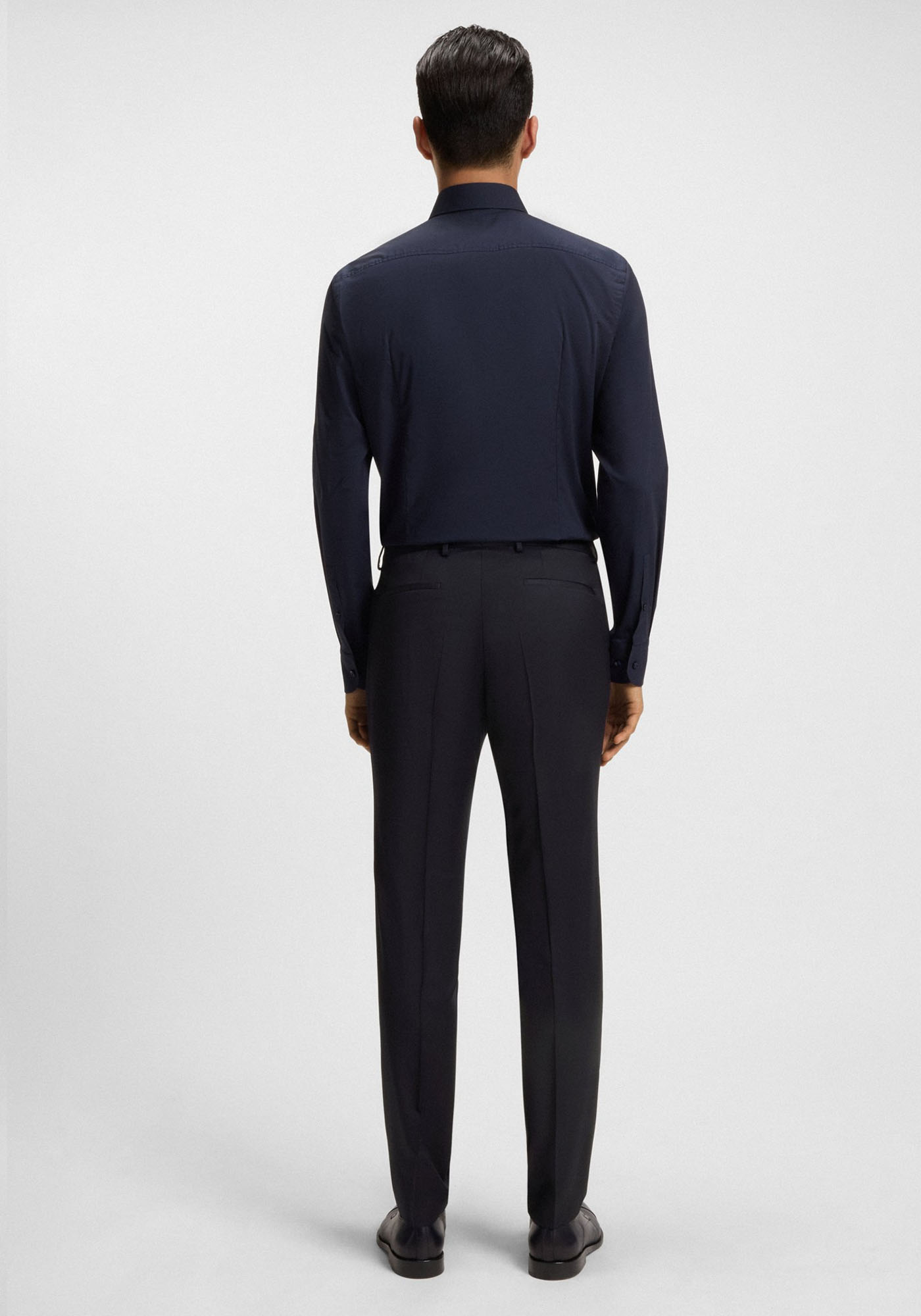 Aνδρικό Παντελόνι της εταιρείας BOSS. Ανήκει στην Wenten συλλογή της εταιρείας και αποτελείται από μαλακό ύφασμα υψηλής ποιότητας. Είναι μονόχρωμο και σε Extra στενή γραμμή, ενώ το λογότυπο το διακοσμεί στο πίσω μέρος.