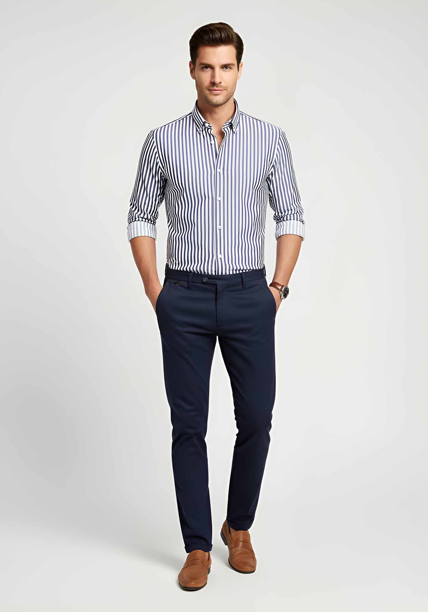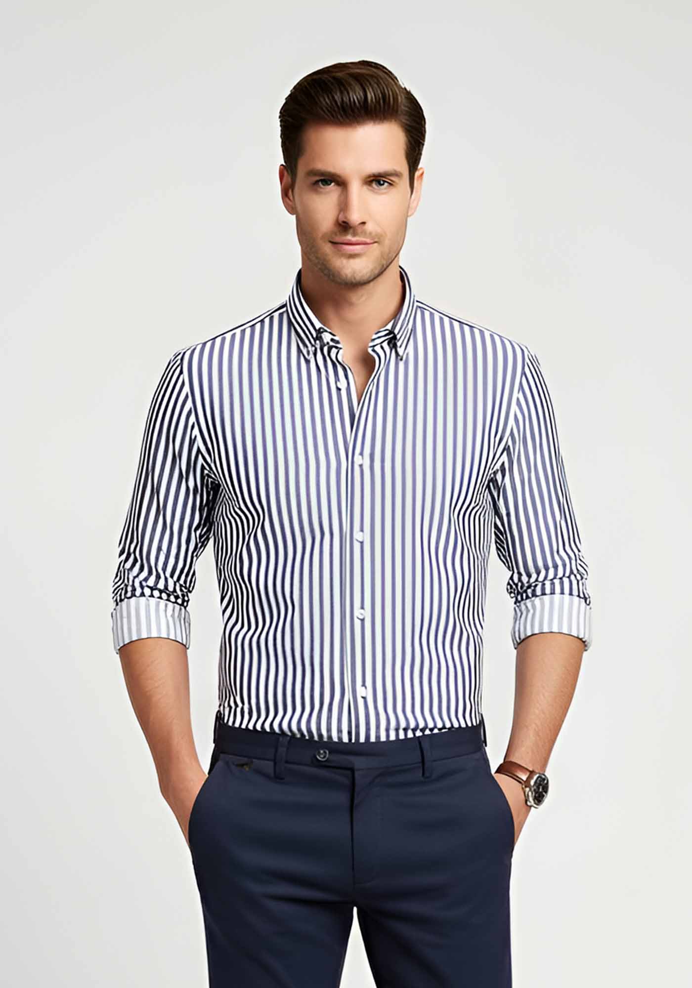 Ανδρικό Ριγέ πουκάμισο της εταιρείας Fragosto. Ανήκει στην Stripe συλλογή της εταιρείας και χαρακτηρίζεται από τον άψογο σχεδιασμό. Τέλος είναι σε regular γραμμή, από απαλό ύφασμα υψηλής ποιότητας και είναι διακοσμημένο με διακριτική ρίγα, η οποία δημιουργεί διχρωμία.