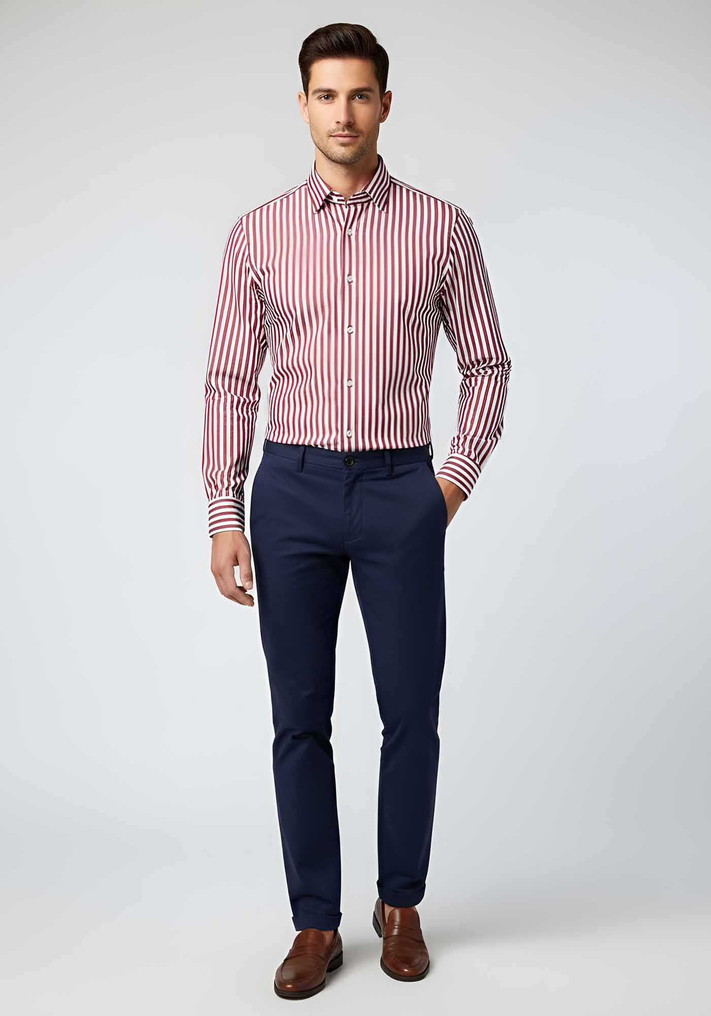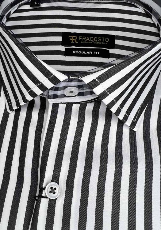 Ανδρικό Ριγέ πουκάμισο της εταιρείας Fragosto. Ανήκει στην Stripe συλλογή της εταιρείας και χαρακτηρίζεται από τον άψογο σχεδιασμό. Τέλος είναι σε regular γραμμή, από απαλό ύφασμα υψηλής ποιότητας και είναι διακοσμημένο με διακριτική ρίγα, η οποία δημιουργεί διχρωμία.