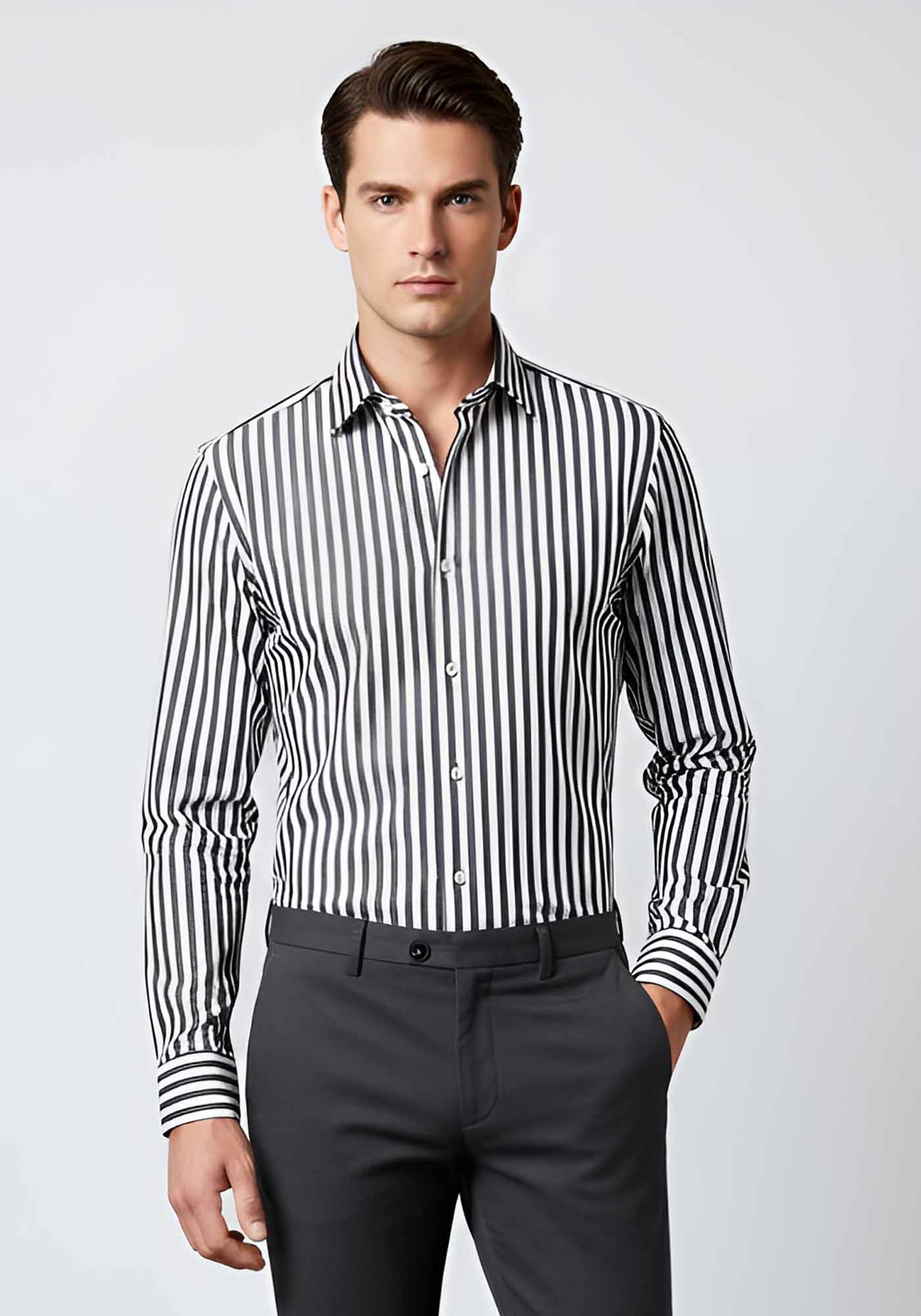 Ανδρικό Ριγέ πουκάμισο της εταιρείας Fragosto. Ανήκει στην Stripe συλλογή της εταιρείας και χαρακτηρίζεται από τον άψογο σχεδιασμό. Τέλος είναι σε regular γραμμή, από απαλό ύφασμα υψηλής ποιότητας και είναι διακοσμημένο με διακριτική ρίγα, η οποία δημιουργεί διχρωμία.