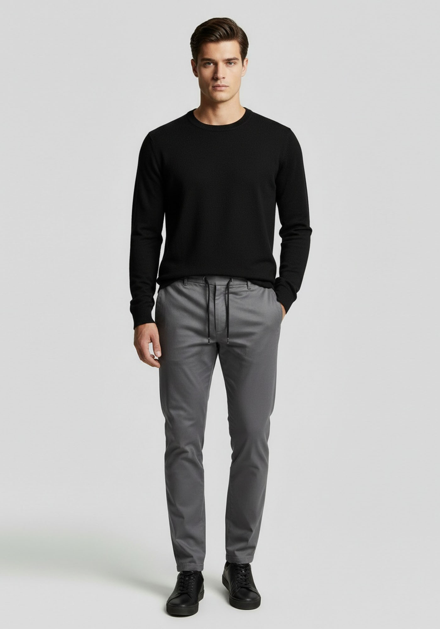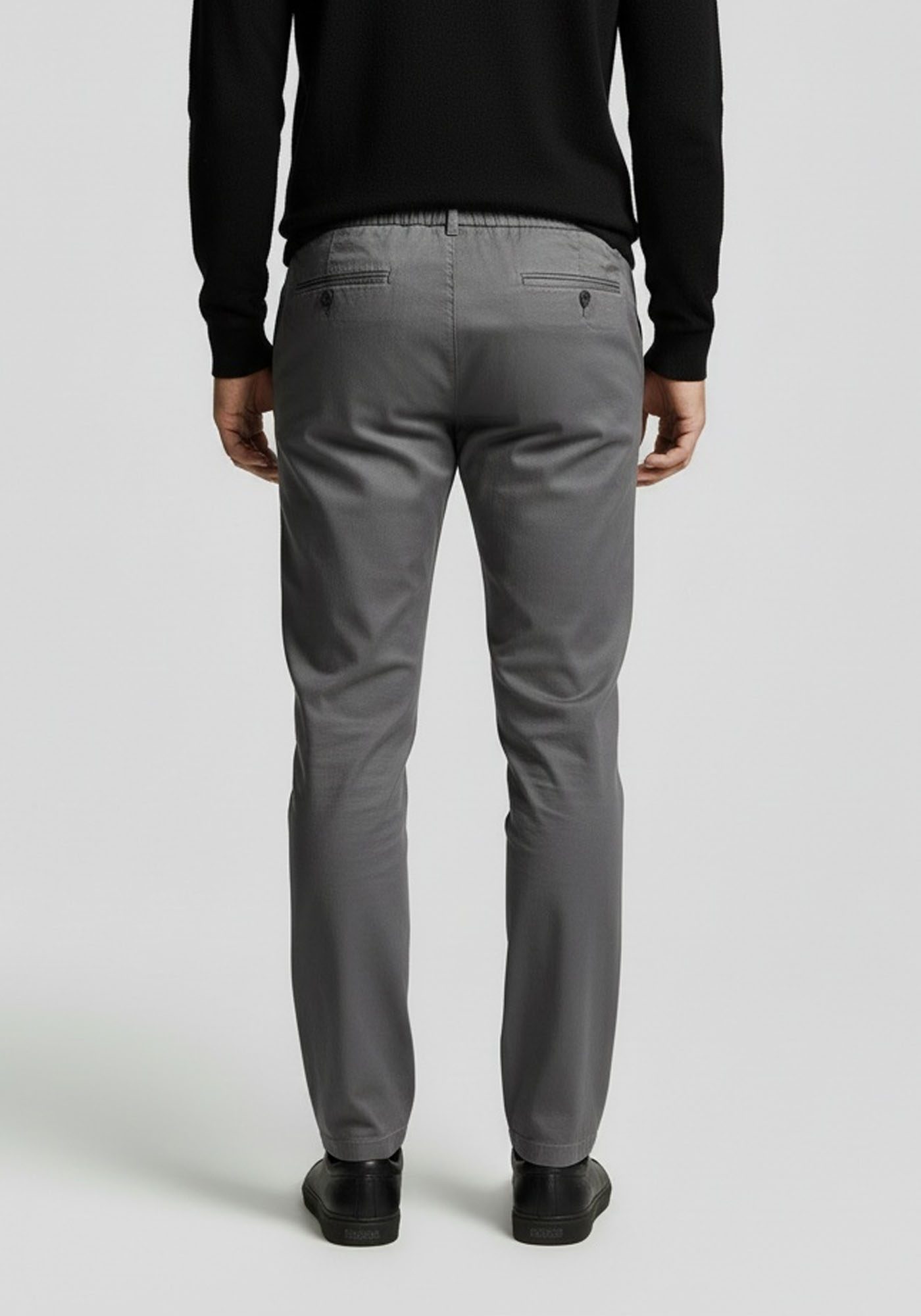 Ανδρικό παντελόνι της εταιρείας Hamaki Ho. Ανήκει στην Chino συλλογή και είναι μονόχρωμο, από ύφασμα υψηλής ποιότητας. Διαθέτει λάστιχο στην μέση και κορδόνι για καλύτερο κράτημα και είναι σε modern γραμμή.