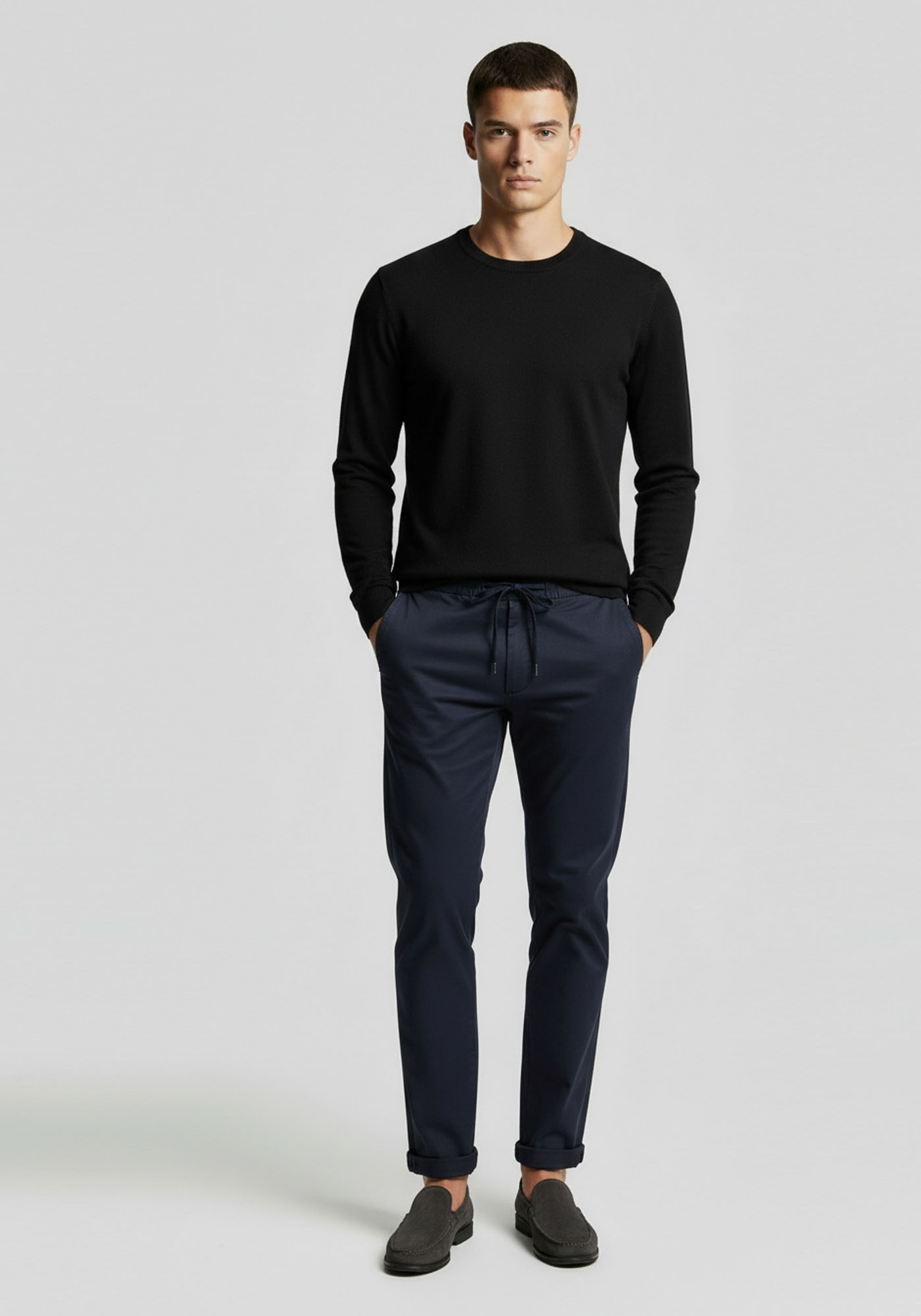Ανδρικό παντελόνι της εταιρείας Hamaki Ho. Ανήκει στην Chino συλλογή και είναι μονόχρωμο, από ύφασμα υψηλής ποιότητας. Διαθέτει λάστιχο στην μέση και κορδόνι για καλύτερο κράτημα και είναι σε modern γραμμή.