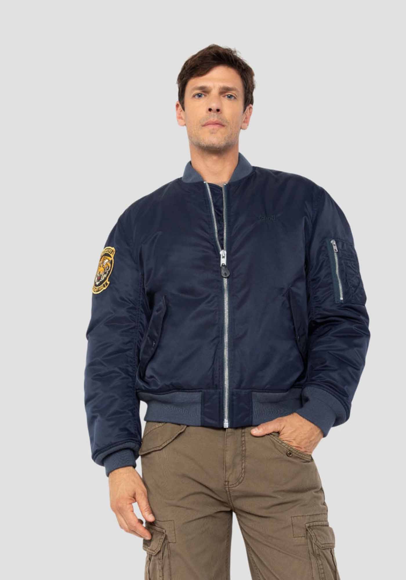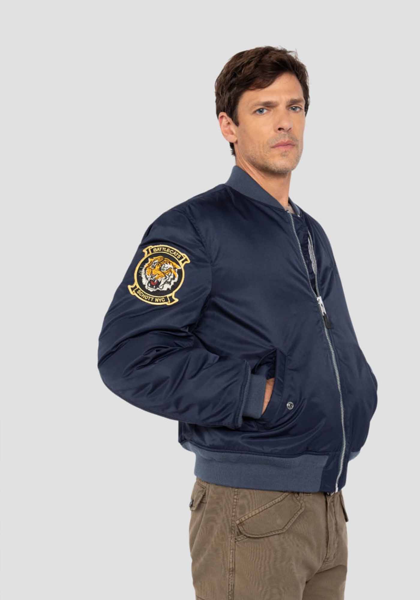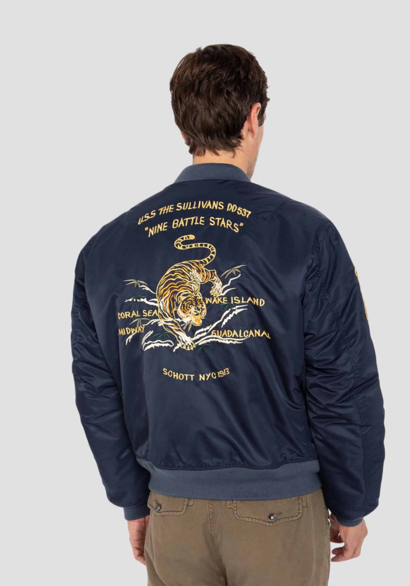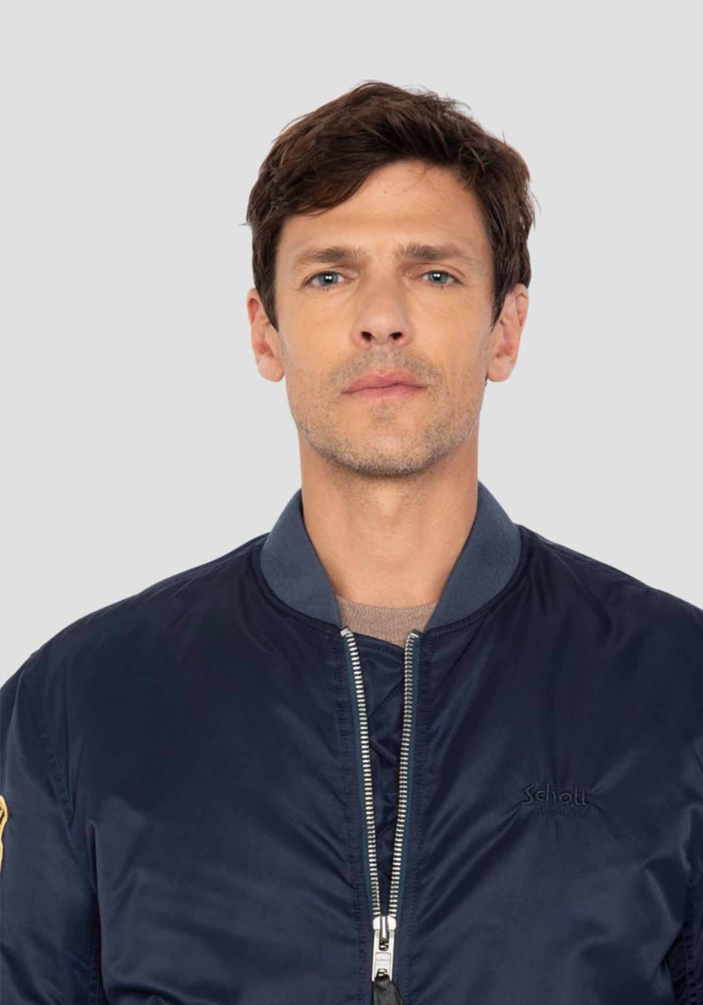 Aνδρικό Bomber Jacket της εταιρείας Schott N.Y.C. Ανήκει στην Suka συλλογή της εταιρείας και είναι εμπνευσμένο από το B-15 flight jacket το οποίο αναφέρεται στην Αεροπορική Πτέριγα. Είναι μονόχρωμο και σε κανονική γραμμή, ενώ διακοσμείται με διάφορα patches στο ύψος του στήθους και στο μπράτσο. Τέλος, διαθέτει αποσπώμενη γούνινη επένδυση στον γιακά, τσέπες στο πλάι και στο μανίκι που κλείνει με φερμουάρ.