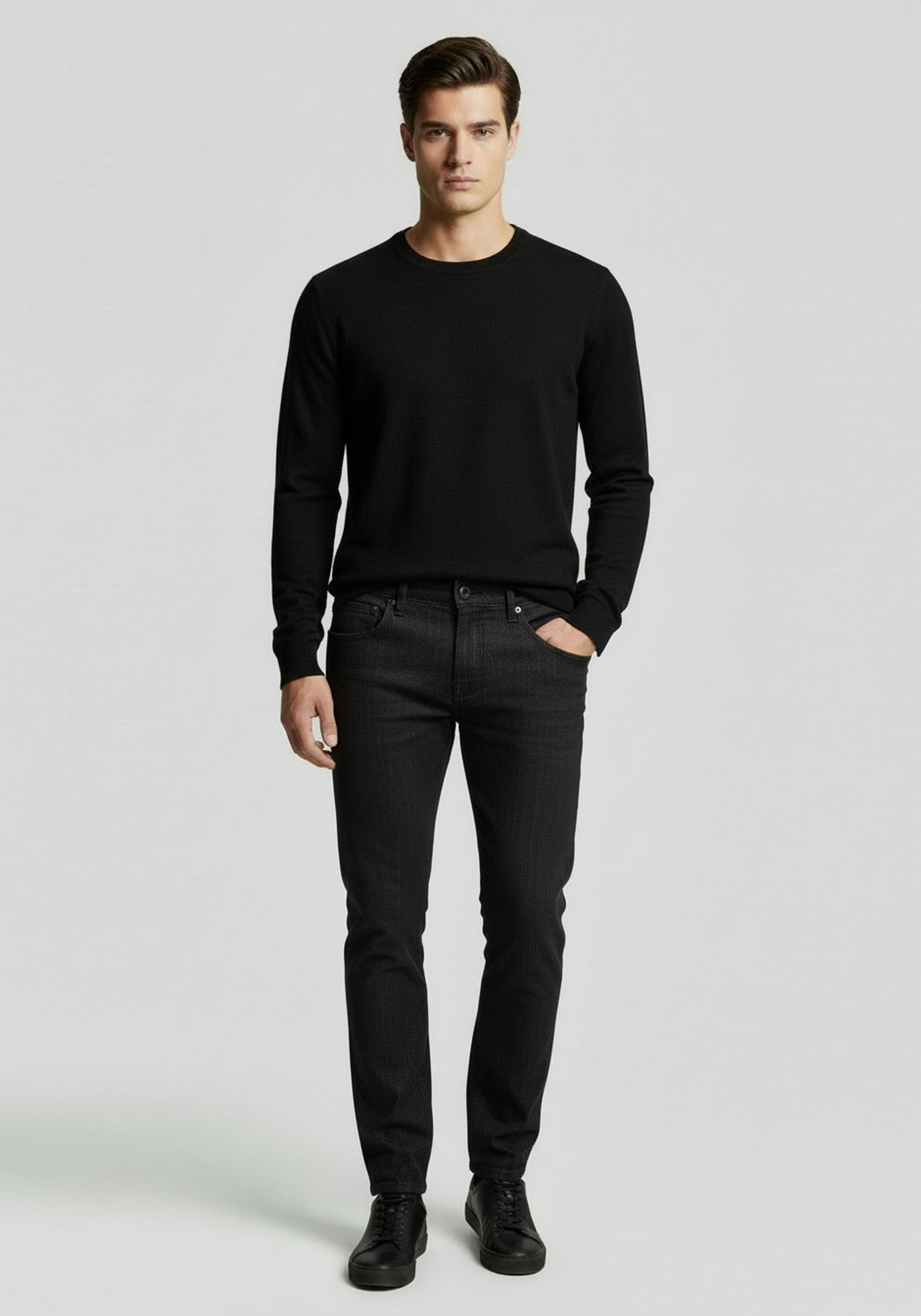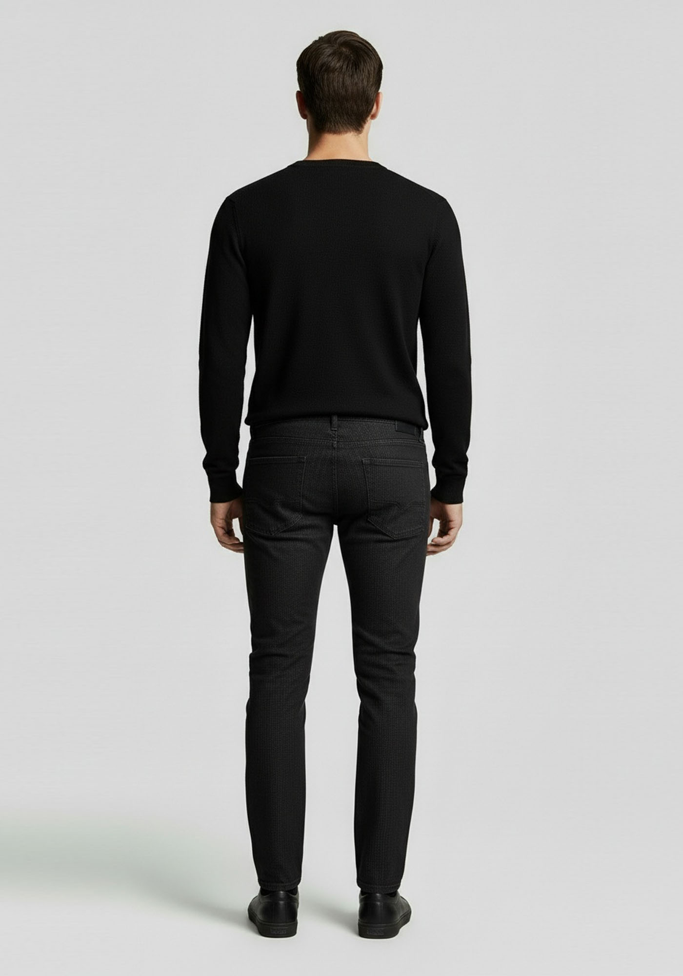 Ανδρικό Jean παντελόνι της εταιρείας BOSS. Ανήκει στην Re. Maine5 συλλογή της εταιρείας και χαρακτηρίζεται από τον minimal σχεδιασμό. Είναι από μαλακό ύφασμα το οποίο αγκαλιάζει άψογα το ανδρικό σώμα, με micropattern λεπτομέρειες, ενώ τέλος, το λογότυπο είναι χαραγμένο στην δερμάτινη επένδυση στο πίσω μέρος.