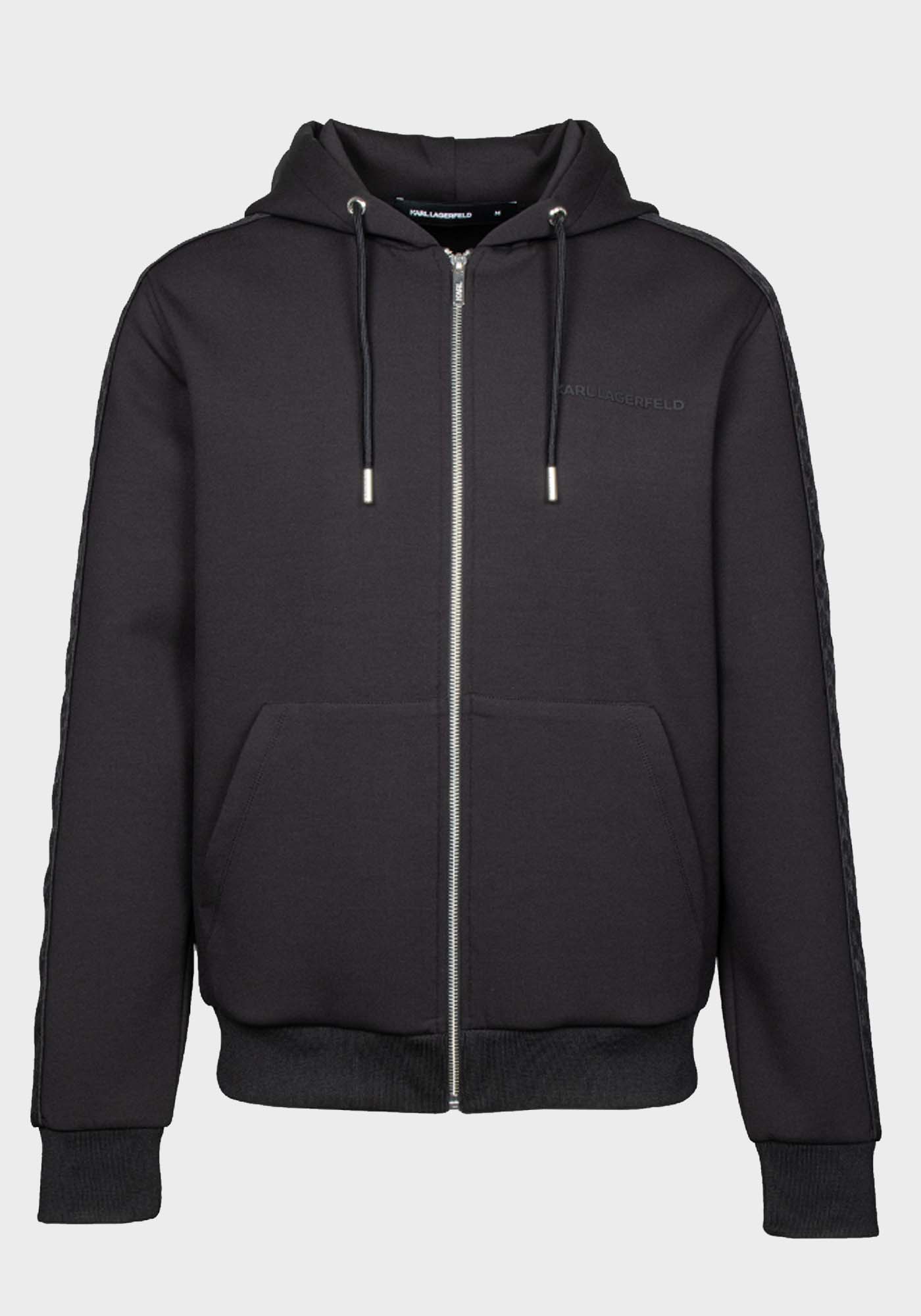 Ανδρική ζακέτα της εταιρείας Karl Lagerfeld. Ανήκει στην Pre συλλογή και χαρακτηρίζεται από το λογότυπο στο ύψος του στήθους σε συνδυασμό με το επαναλαμβανόμενο KL logo κατά μη΄κος των μανικιών. Διαθέτει κουκούλα, τσέπες στην μέση και λάστιχο σε μανίκια και μέση για σταθερό κράτημα.