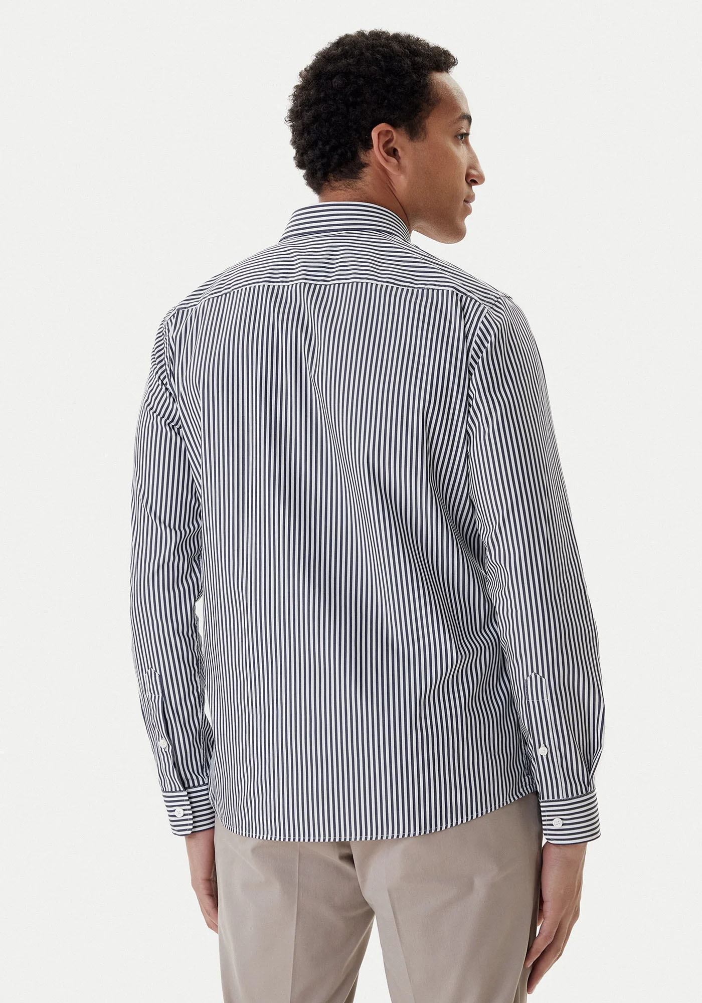 Ανδρικό πουκάμισο της εταιρείας BOSS. Ανήκει στην H Roan συλλογή της εταιρείας, και έχει σαν χαρακτηριστικό το stripe print στην ύφανσή του. Είναι σε Slim γραμμή, από ύφασμα υψηλής ποιότητας και αγκαλίαζει άψογα το κορμί.
