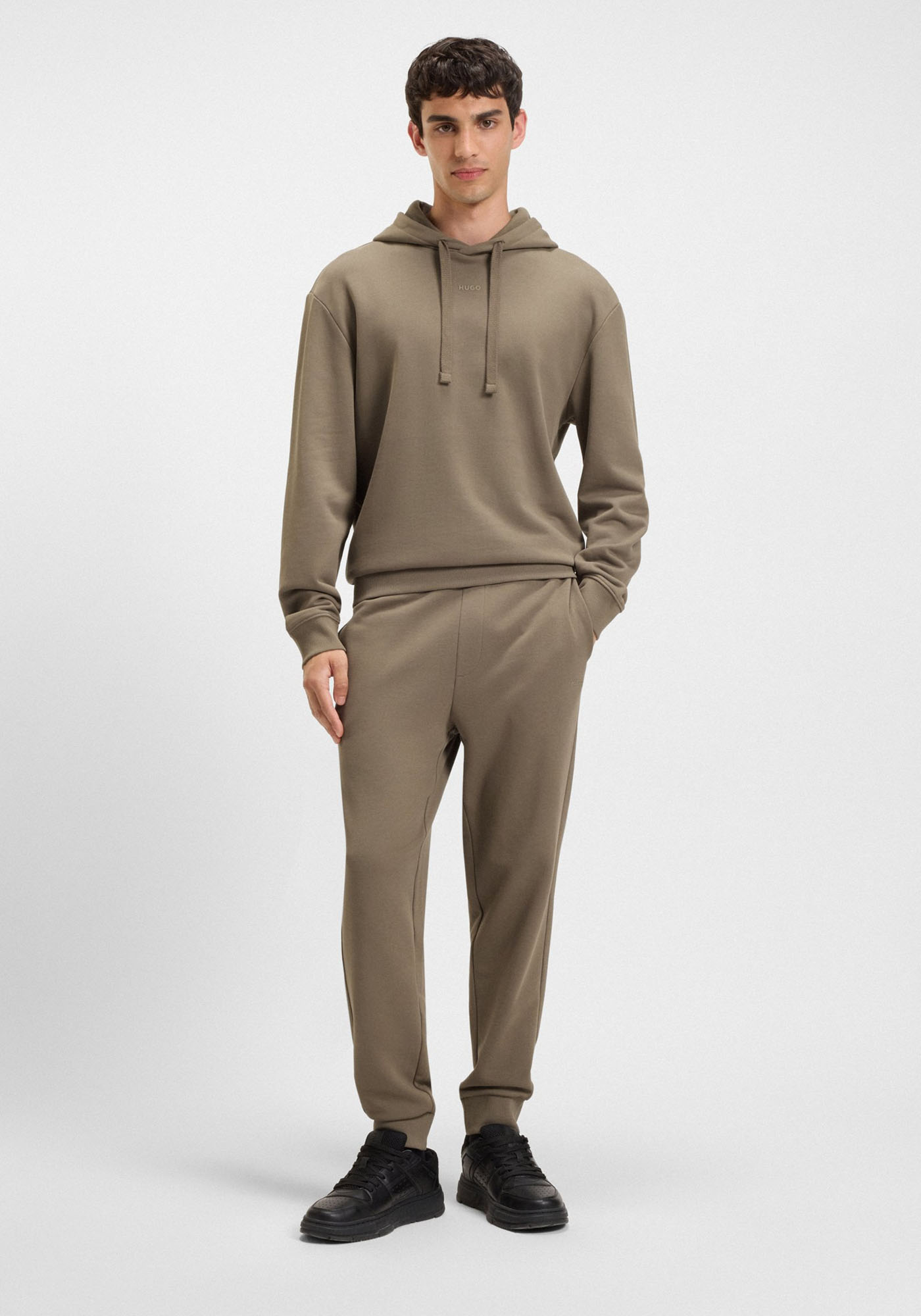 Ανδρική φόρμα της εταιρείας HUGO. Ανήκει στην Dayote232 συλλογή και χαρακτηρίζεται από το brandname στο ύψος του μηρού. Είναι σε κανονική γραμμή και διαθέτει λάστιχο στην μέση που δένει με κορδόνι για πιο σταθερό κράτημα. Ιδανική επιλογή για πιο casual εμφανίσεις.