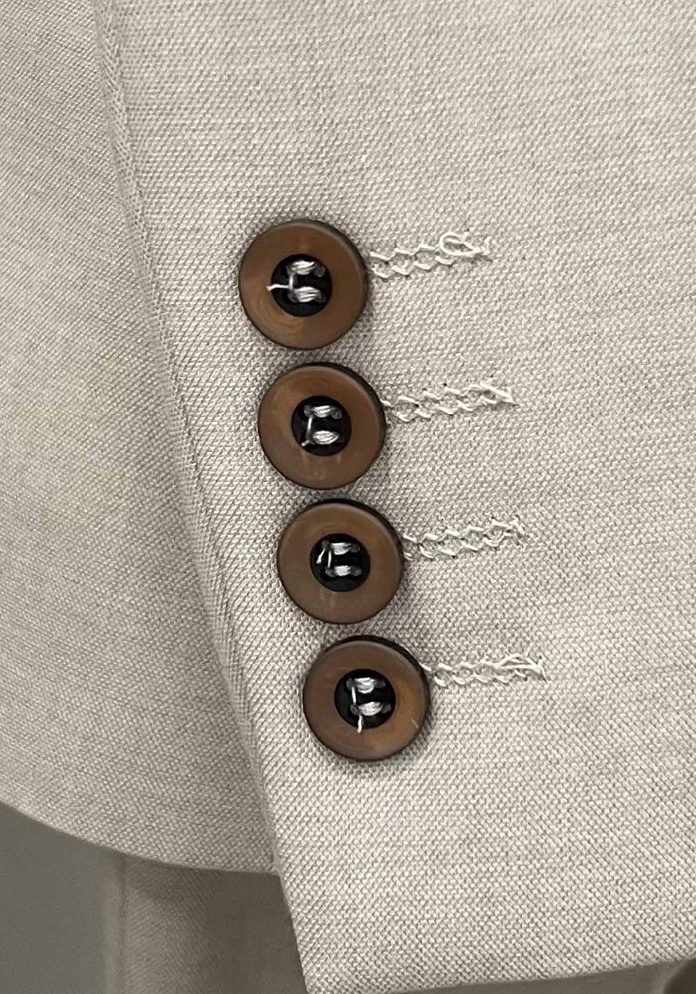 Το σακάκι έχει μοντέρνα εφαρμογή που αναδεικνύει το σώμα, διαθέτει δύο πλαϊνές τσέπες που κλείνουν με καπάκι, τσέπη στο στήθος και ελαφριά επένδυση στον ώμο.