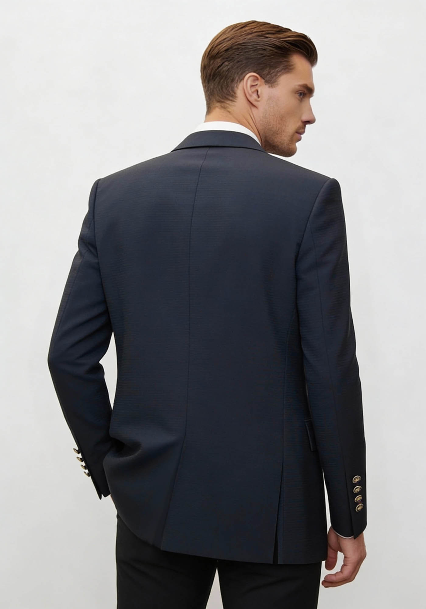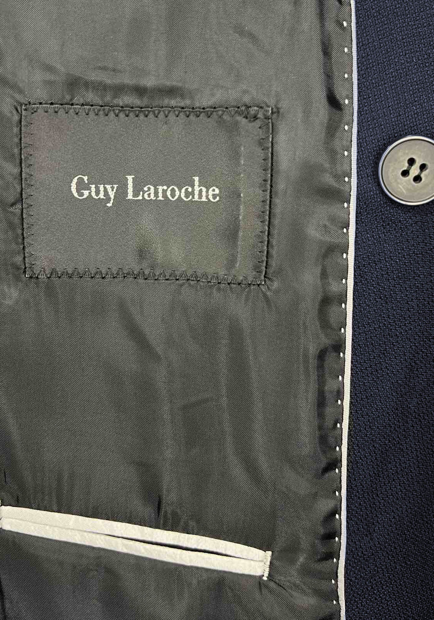 Ανδρικό σακάκι, σε slim γραμμή της εταιρείας Guy Laroche. Το σακάκι έχει μοντέρνα εφαρμογή που αναδεικνύει το σώμα, διαθέτει στενή μέση, σταυρωτό κλείσιμο με ένα εσωτερικό και δύο εξωτερικά κουμπιά, δύο τσέπες με καπάκι, τσέπη στο στήθος και ελαφριά επένδυση στον ώμο.