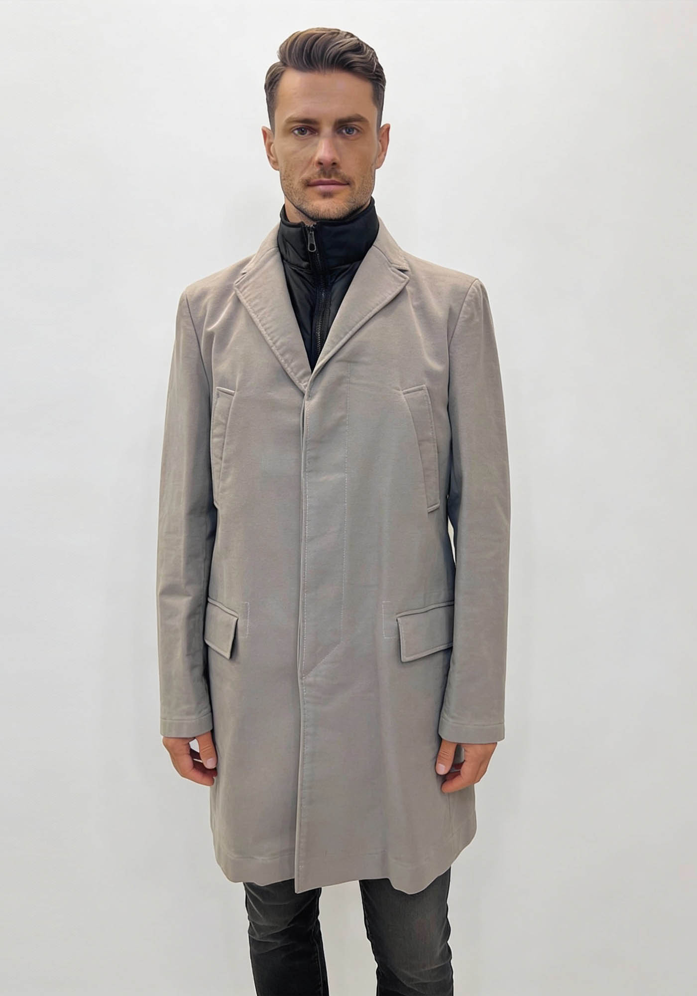 Ανδρικό παλτό της εταιρείας John Barrit. Ανήκει στην Hybrid συλλογή της εταιρείας και έχει σαν χαρακτηριστικό την αποσπώμενη επένδυση στο εσωτερικό του. Είναι μονόχρωμο και χαρακτηρίζεται ως classic λόγω του σχεδιασμού που δίνει ένα επιβλητικό ύφος. Επιπλέον, αποτελείται από ζεστό ύφασμα υψηλής ποιότητας, ενώ έχει δύο τσέπες στο πλάι.